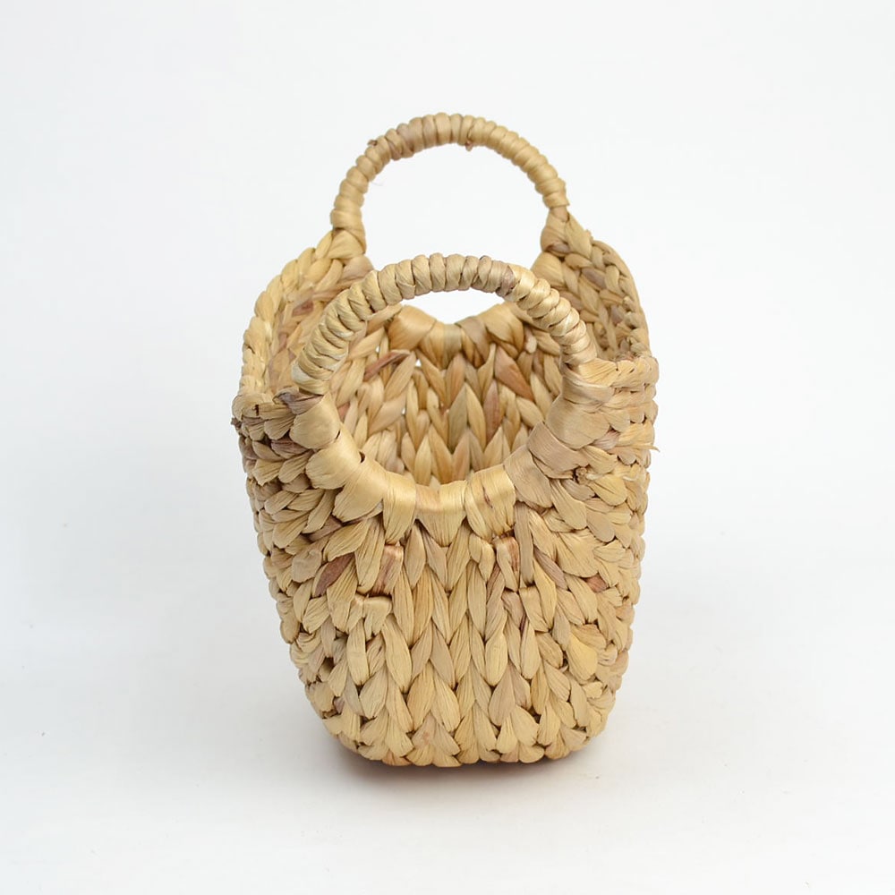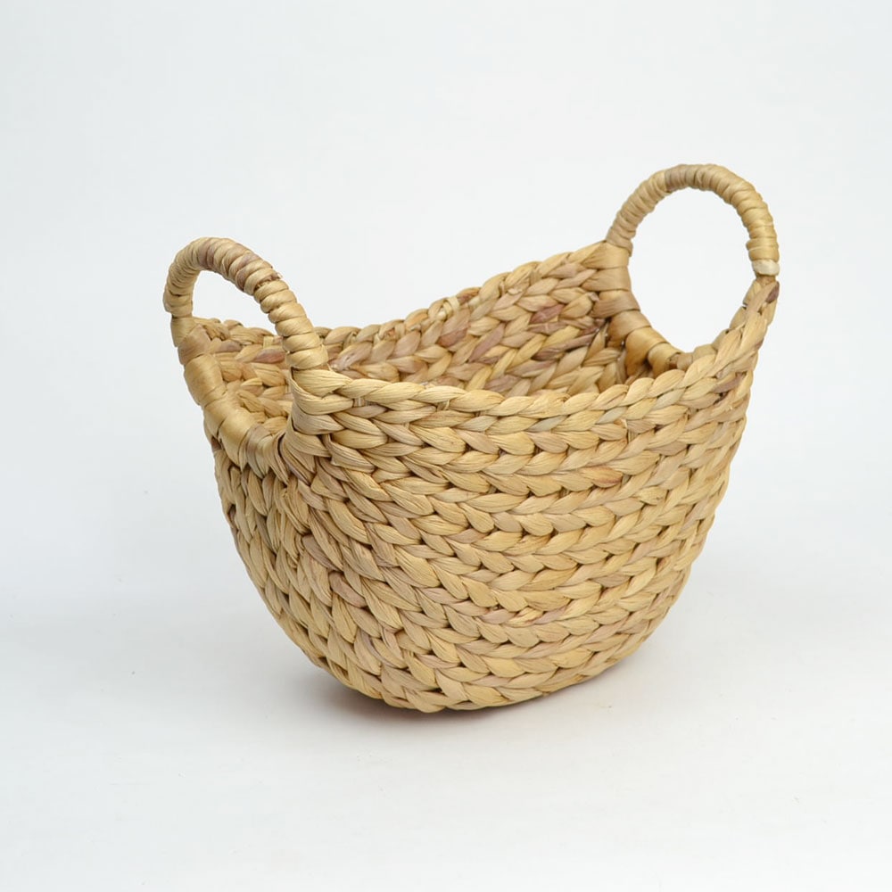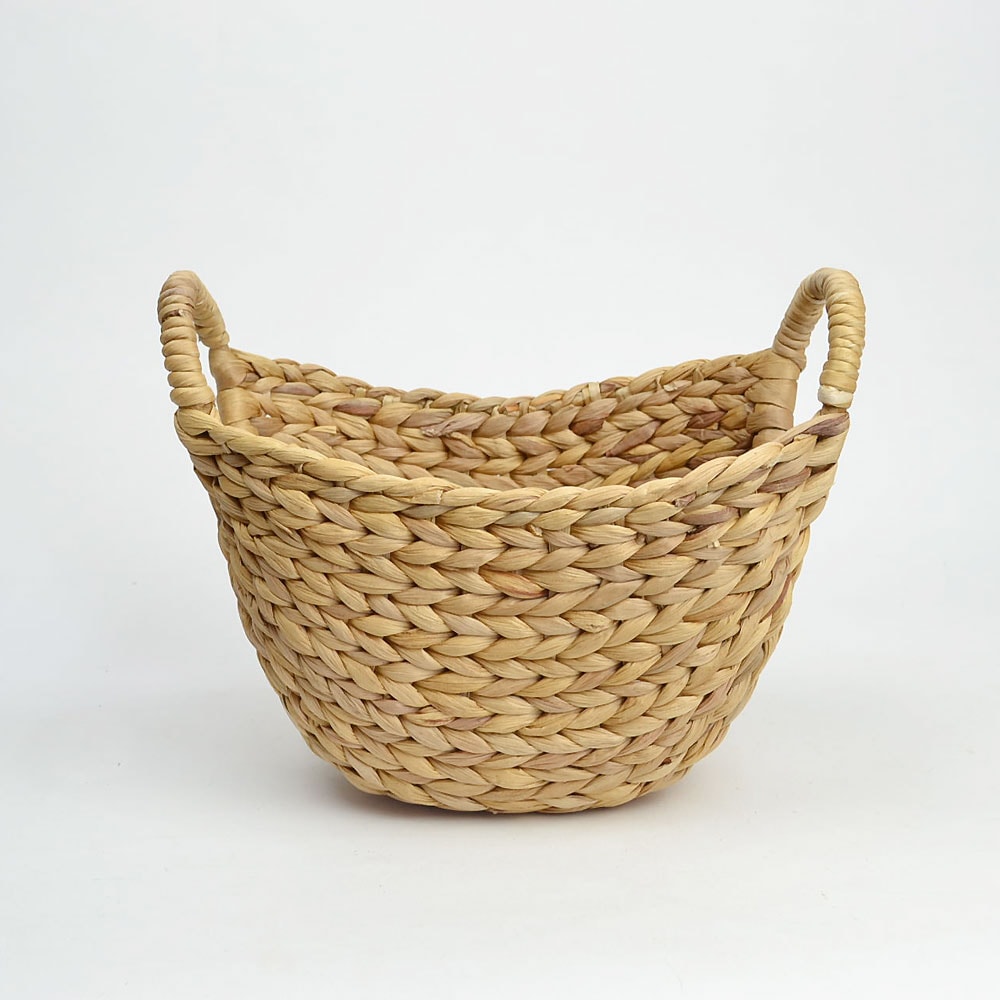 ウォーターヒヤシンスバスケット 持ち手付き 小さめサイズ ボリュームのある手編みのウォーターヒアシンス。