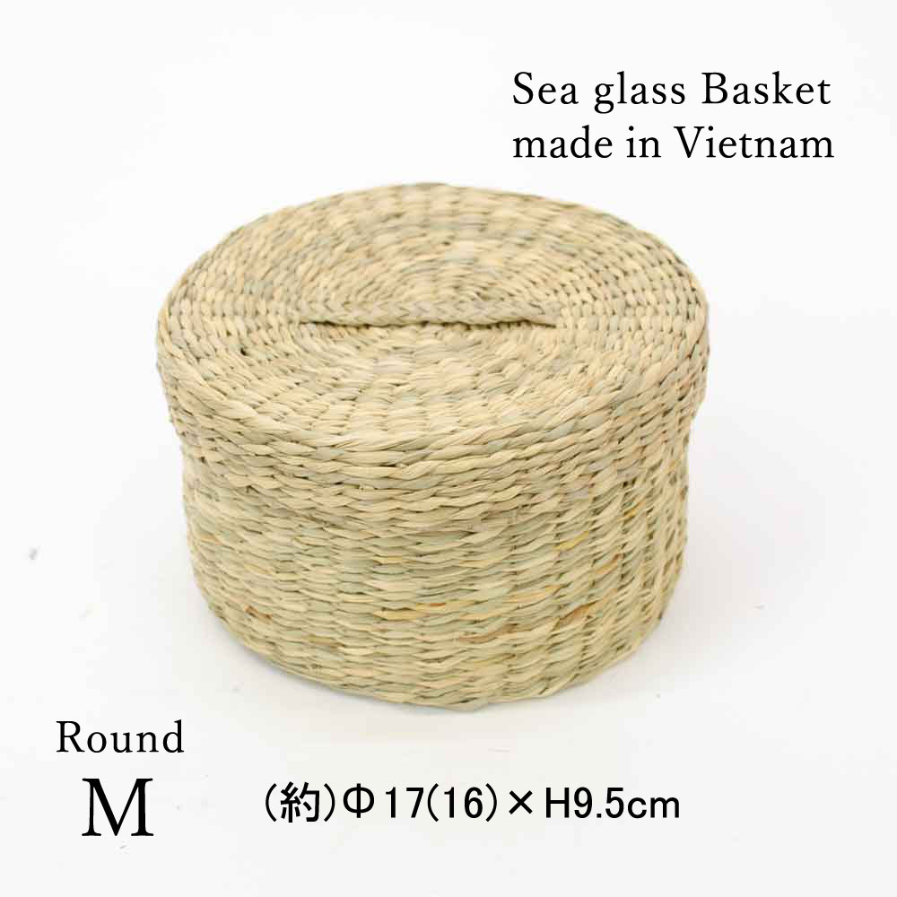 シーグラス 蓋付き バスケット Mサイズ ナチュラルの詳細
