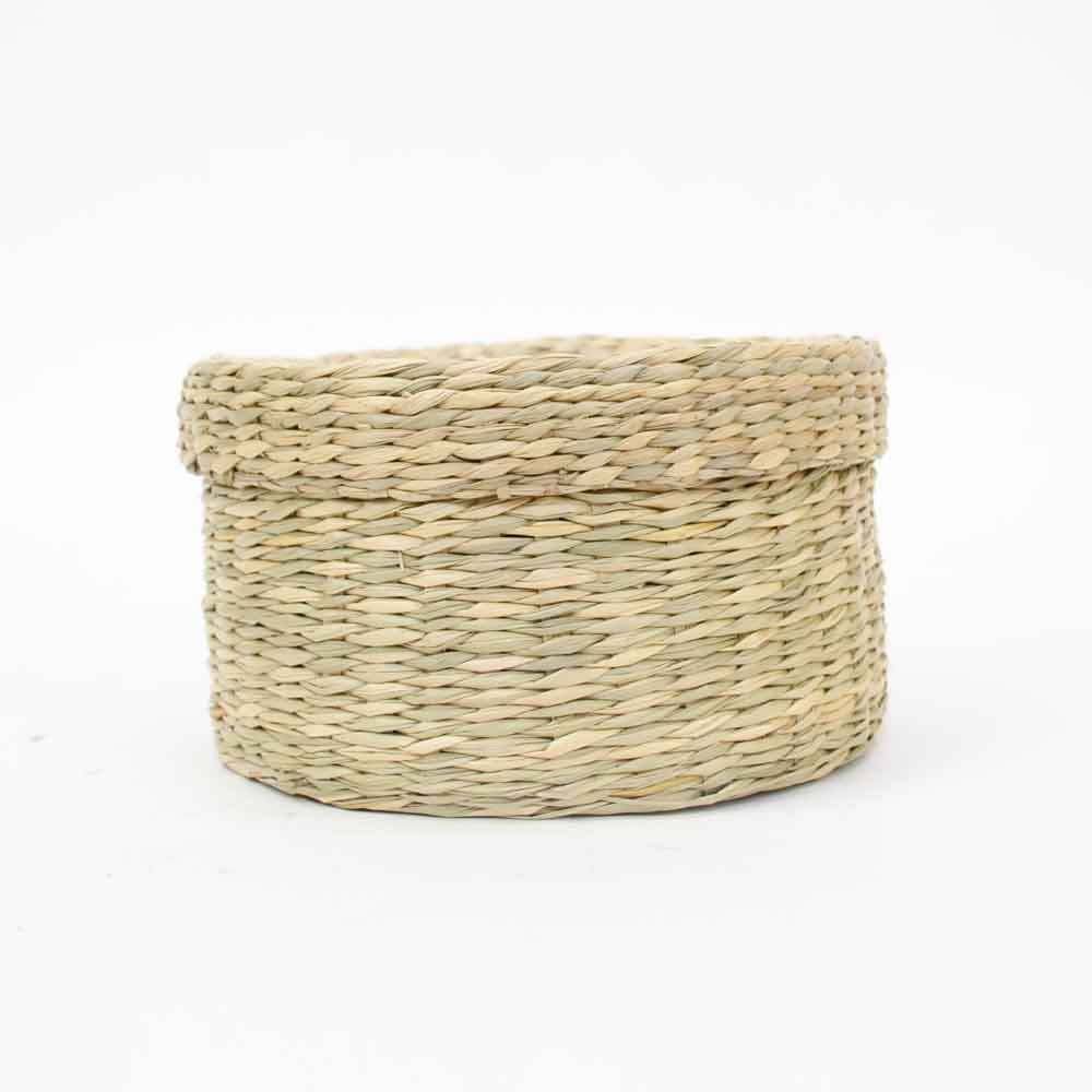 シーグラス 蓋付き バスケット Mサイズ ナチュラルバスケット 収納 ベトナム製 ふた付き 裁縫箱 インテリア シンプル 見せる収納 小物収納 お菓子入れ 可愛い おしゃれ 北欧 小さめなかご カゴ オシャレ