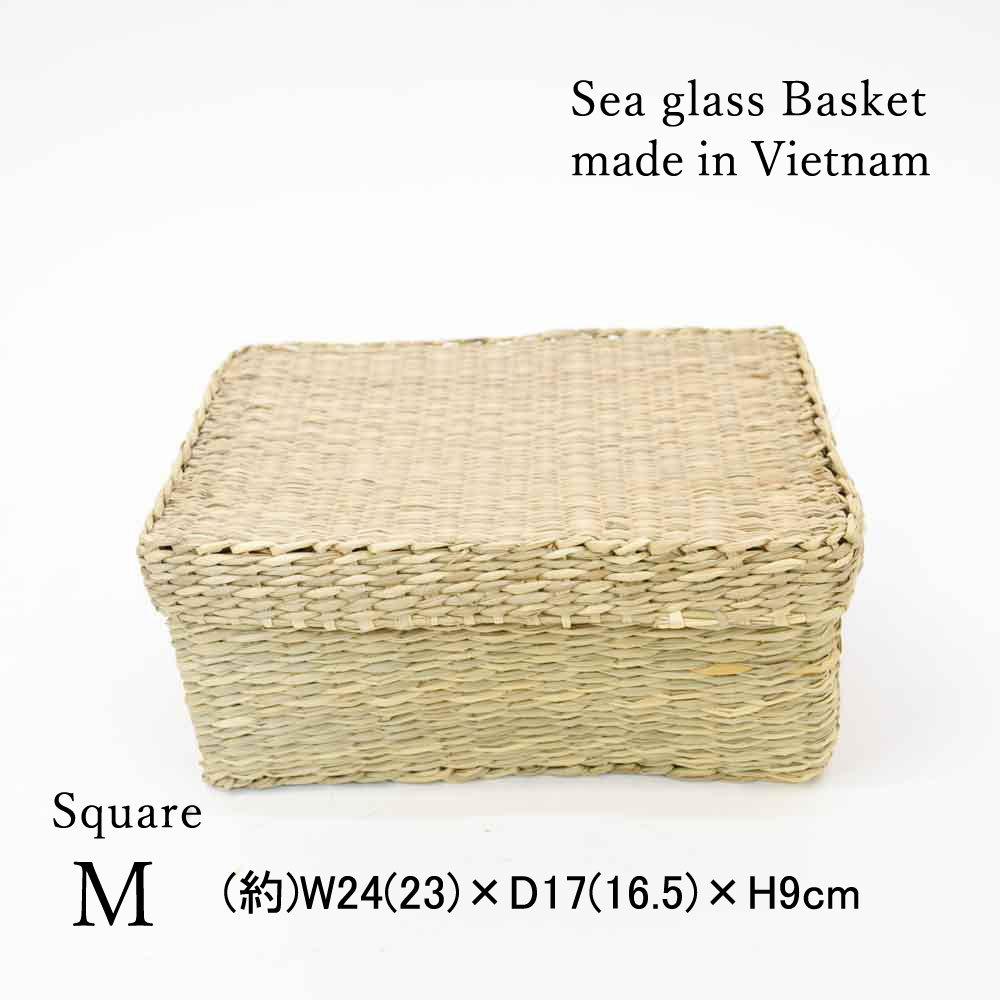シーグラス スクエア 蓋付き バスケット Mサイズの説明