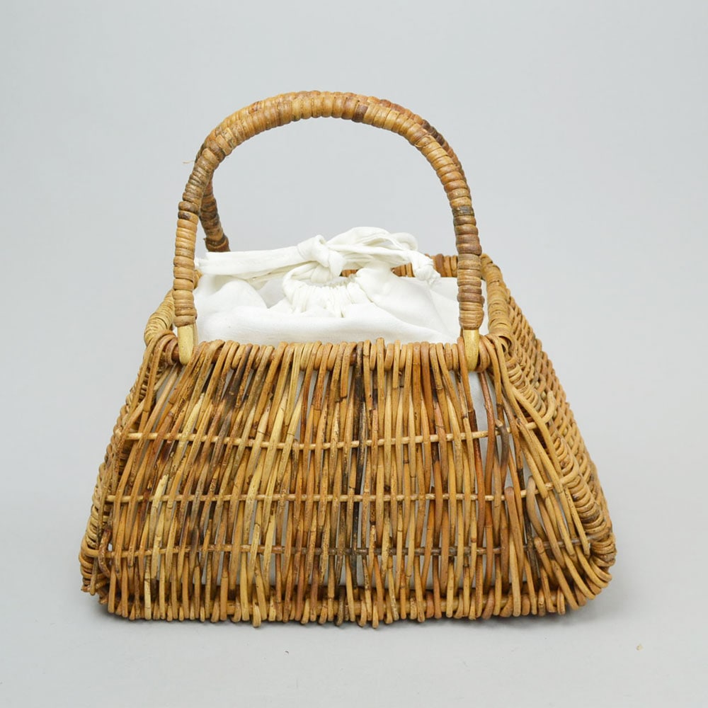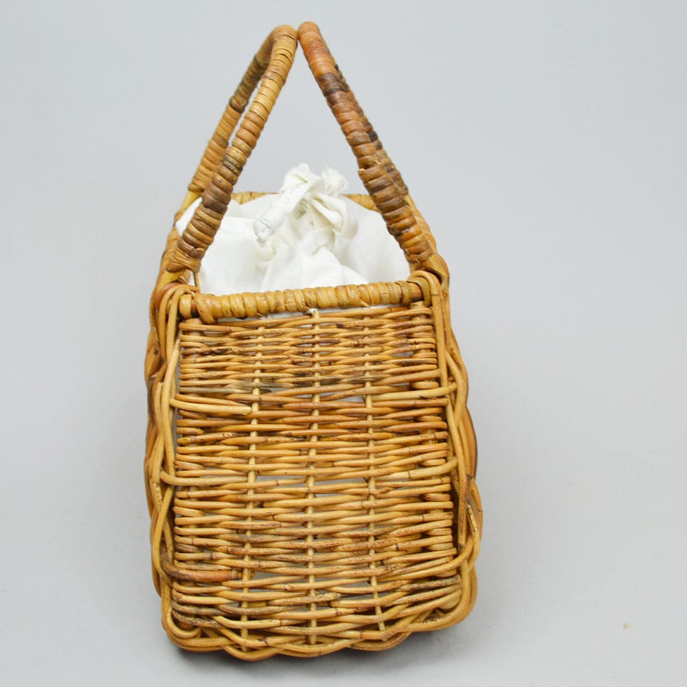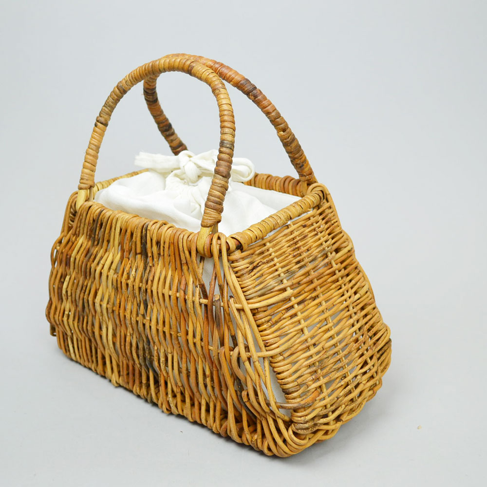 - アラログ かごバッグ ガールズバッグ 巾着一体型 アンティークの風合い 中身が見えない カゴ かご 太めのアラログ 皮付きラタン 丈夫 便利 オシャレ 贈り物 ギフト 可愛い コットンの巾着 籐 コーディネート インテリア