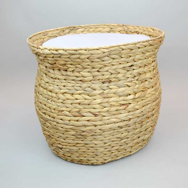 ボリュームのある手編みのウォーターヒアシンス製ペットベッド。
