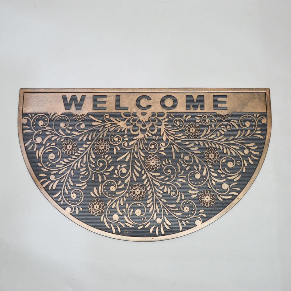 - ラバー マット 『 半円 ウェルカム リーフ 』 玄関マット ウェルカム 屋外用 おしゃれなマット 泥除け 汚れ落とし お洒落 ガレージ 店舗 会社の出入り口 犬 welcome ゴム お出迎え シックなデザイン ドアマット ラバーマット