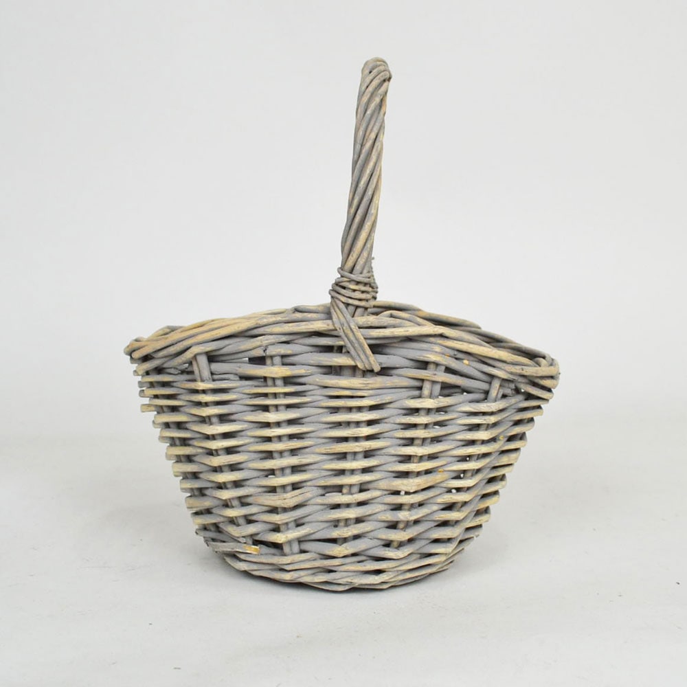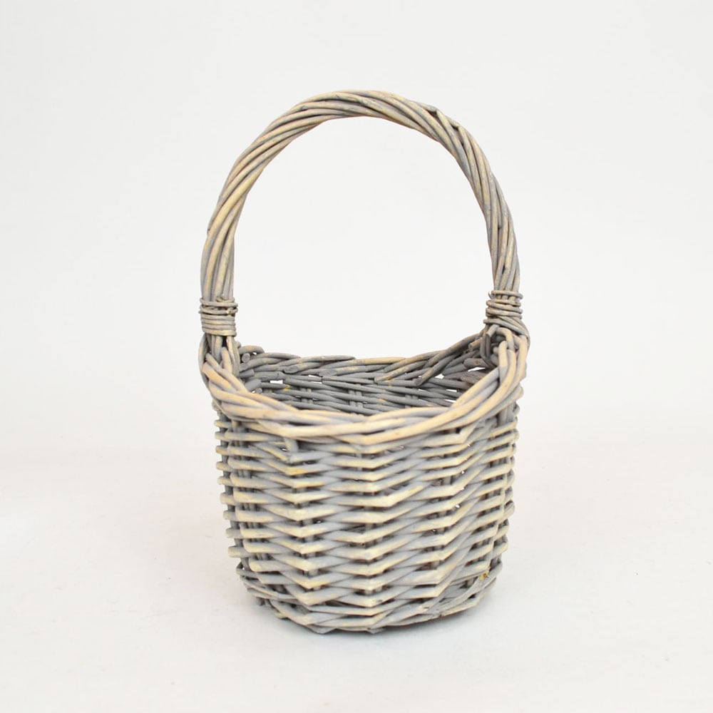 柳 ハンドルかご S ライトグレー ウィローバスケット 花籠