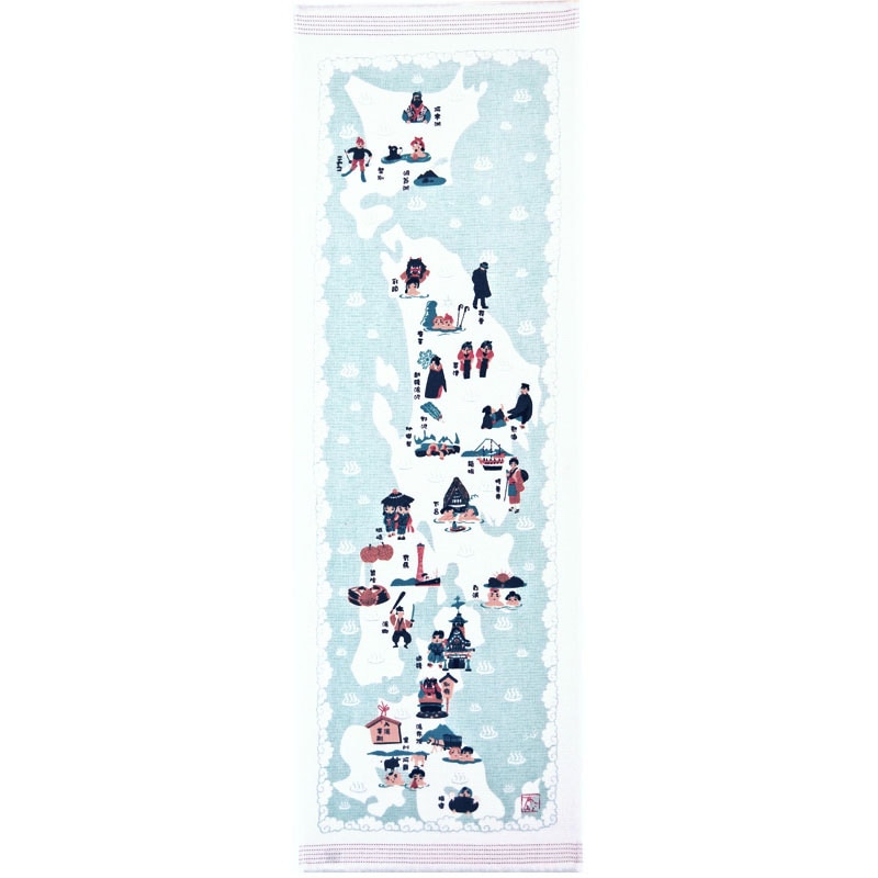 一度は行ってみたい日本の温泉地図をデザインのおしゃれなタオルです。