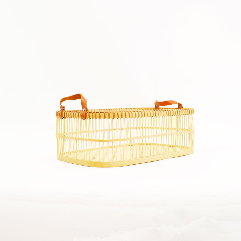 串状の竹で側面を製作、フレームに厚い竹革を使い、