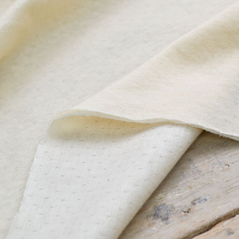 オーガニックの生地を2層に編み、間に空気を含ませることで、