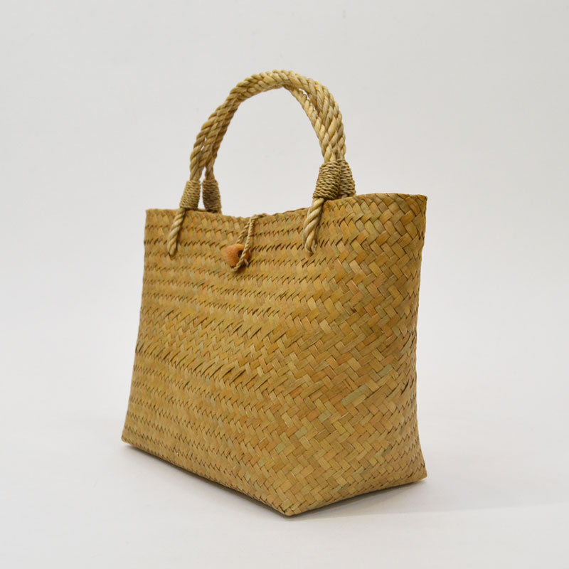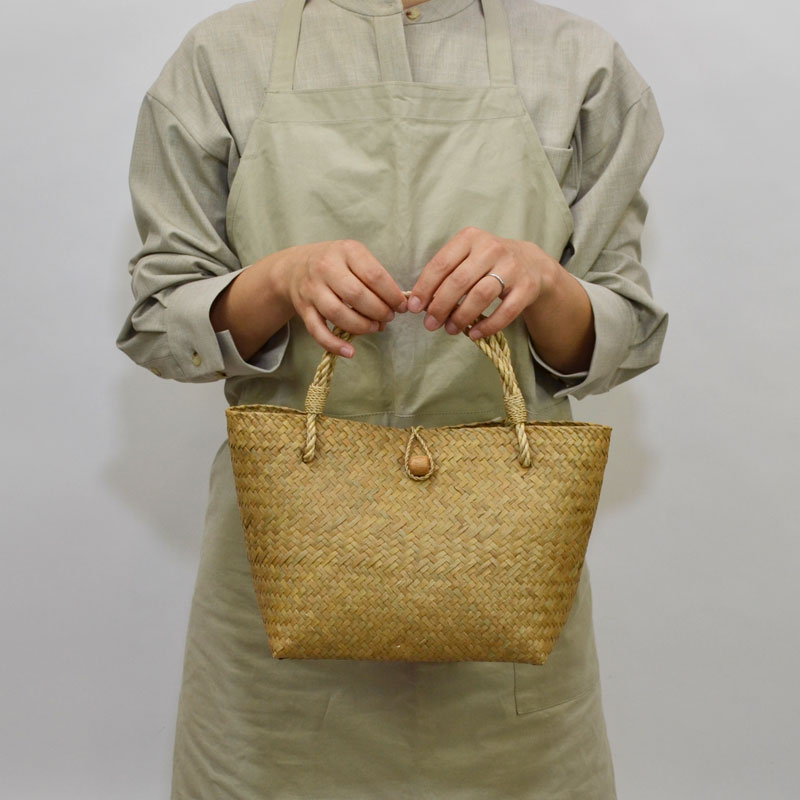 タイ製 カチュー かごバッグ ハンドバッグ 木 ボタン 水草