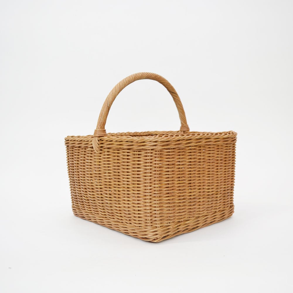 ラタン 深型スクエア ピクニックバスケット ねじり手 籐かご