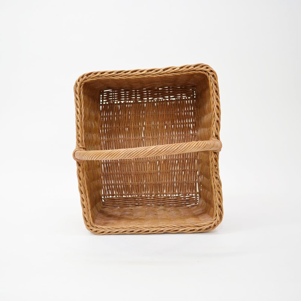 ラタンバスケットのスクエア深型、ねじり一本手。