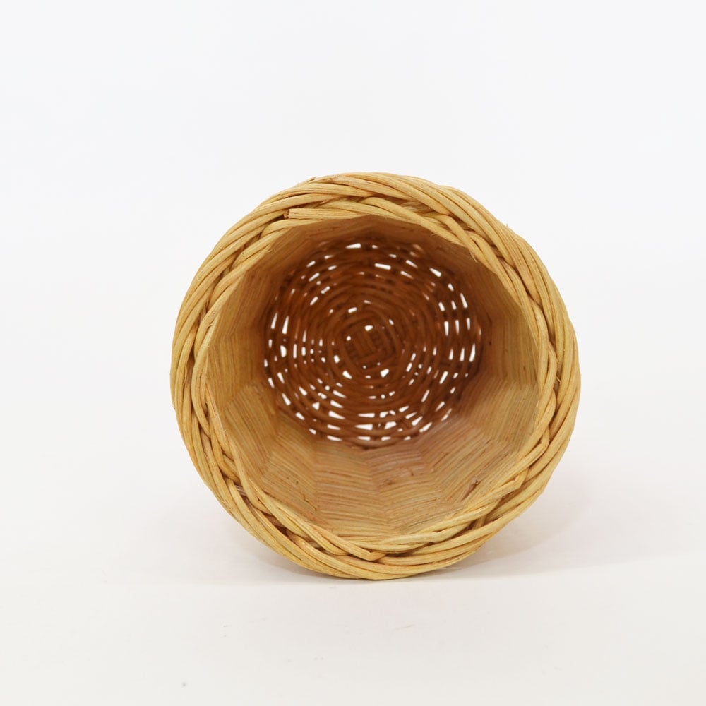 天然素材の筒型ラタンバスケット。