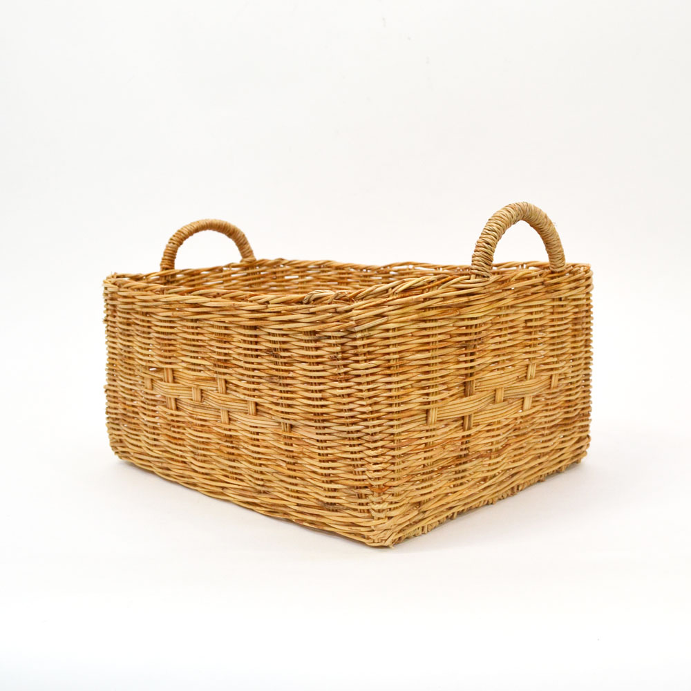 タイ製ラタン 収納バスケット 四角型 取手付き S