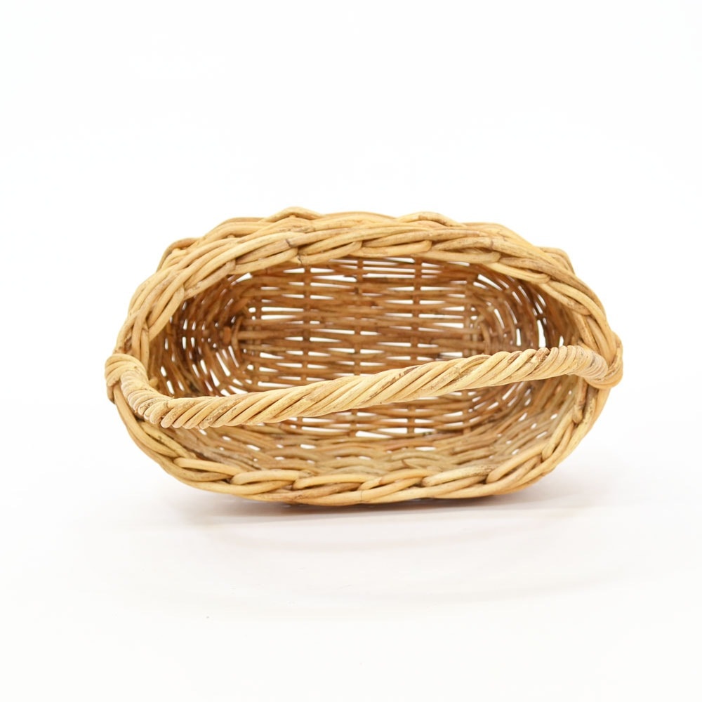 皮付きラタンの風合いと楕円のフォルムがかわいい