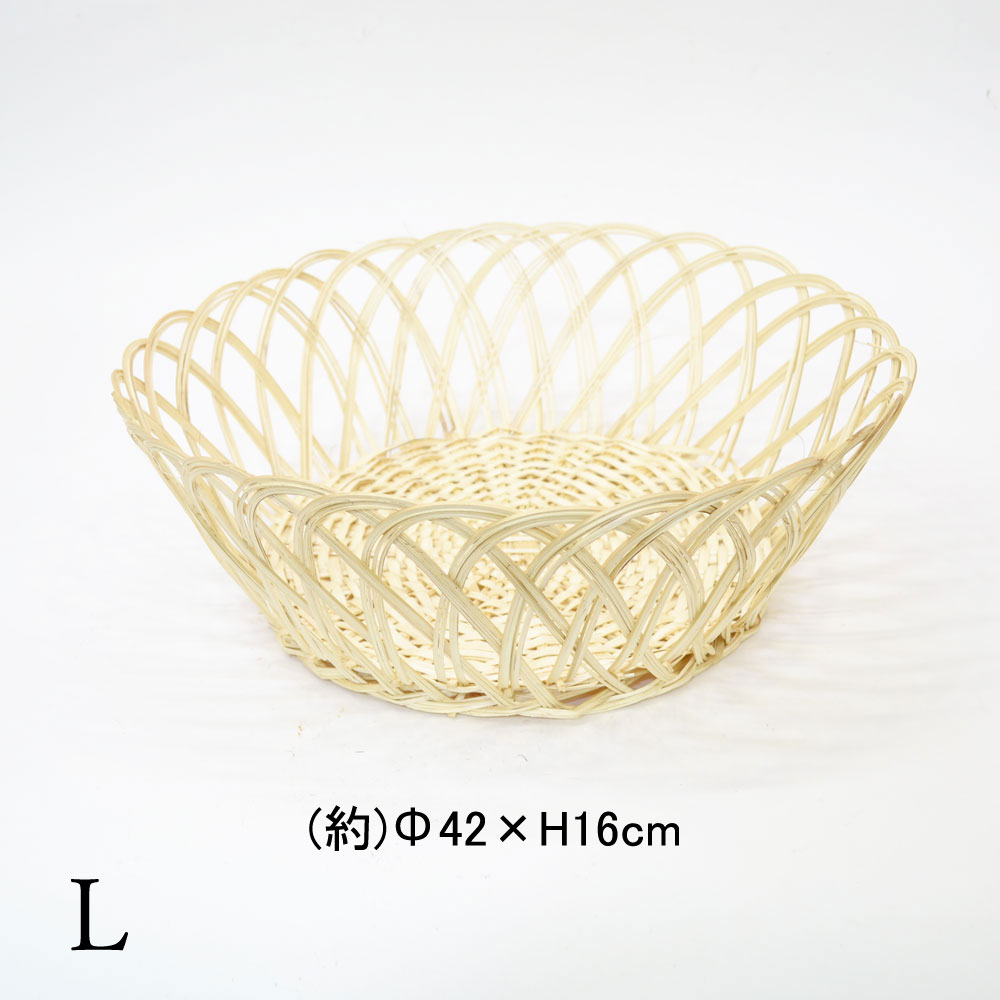 竹製 透かし うろこ編み 丸かご L バスケット 台所 収納