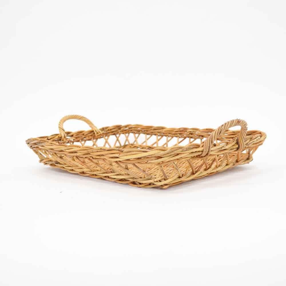 皮付きラタンの風合いと透かし編みがおしゃれなラタントレー。