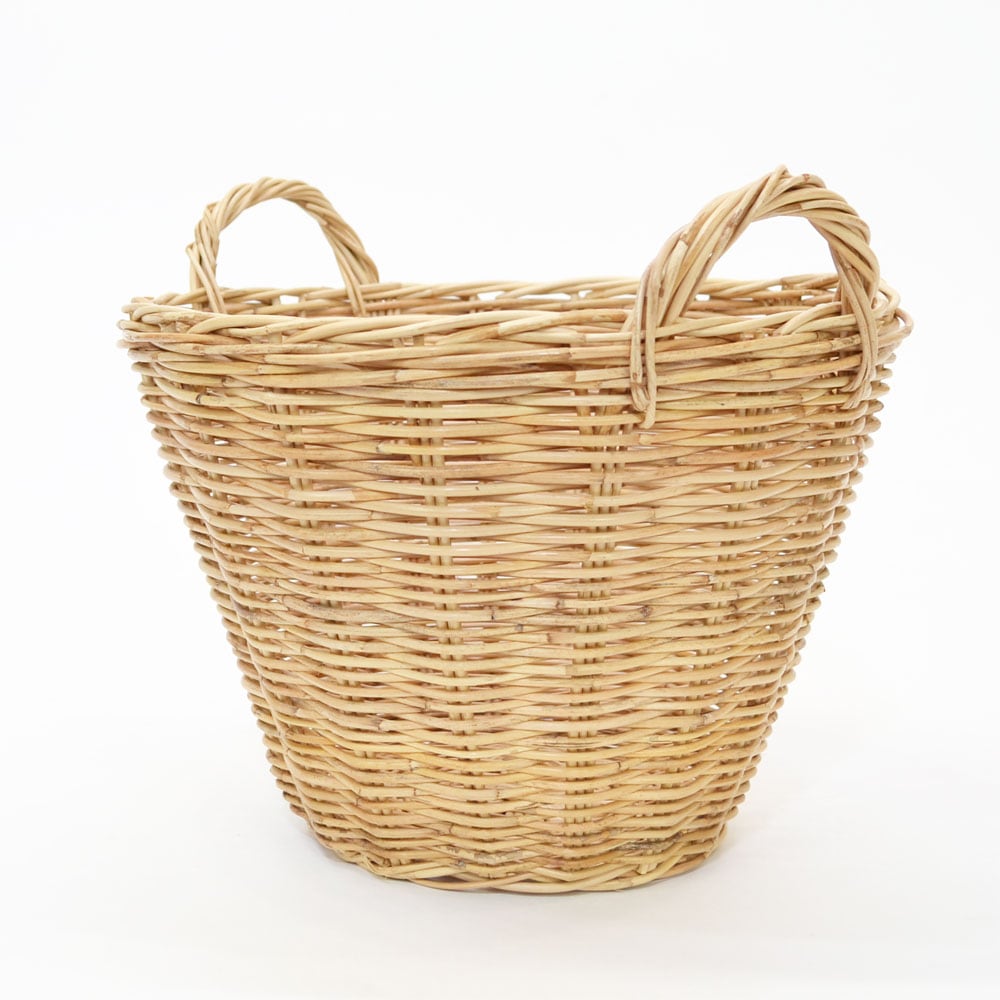 タイ製ラタン 取手付き ラウンドバスケット M 籐 丸籠