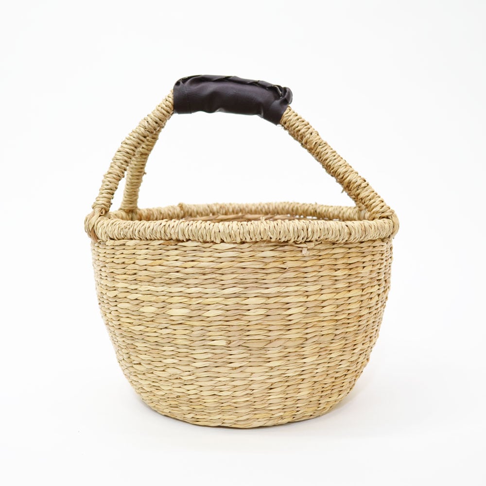 シーグラス 一本手 丸かご 深型 S 革手 ラウンド 籠