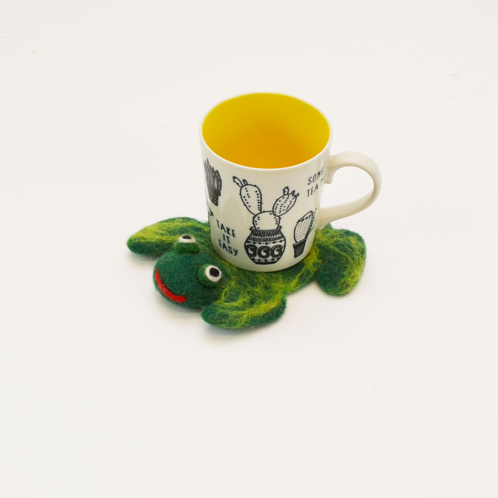 アニマルコースター カエル 蛙 かえる かわいい 羊毛 鍋敷