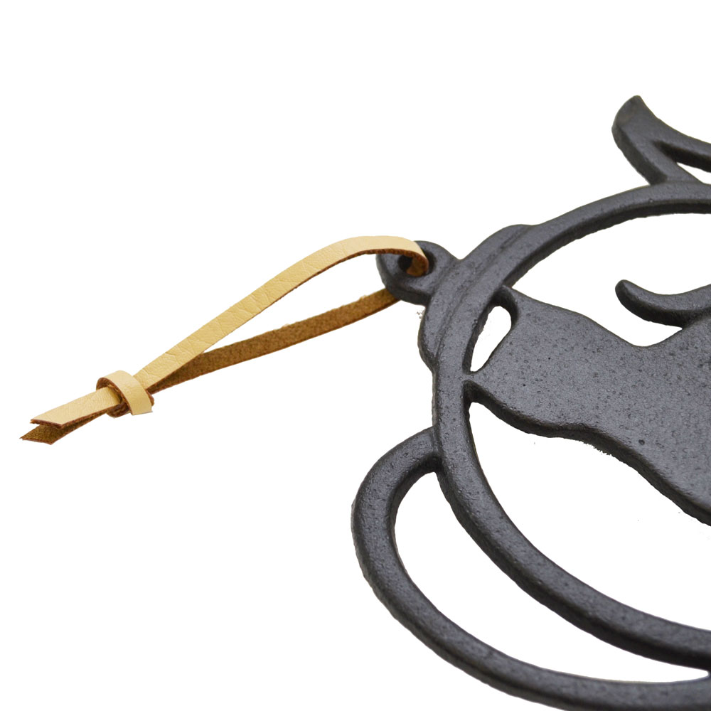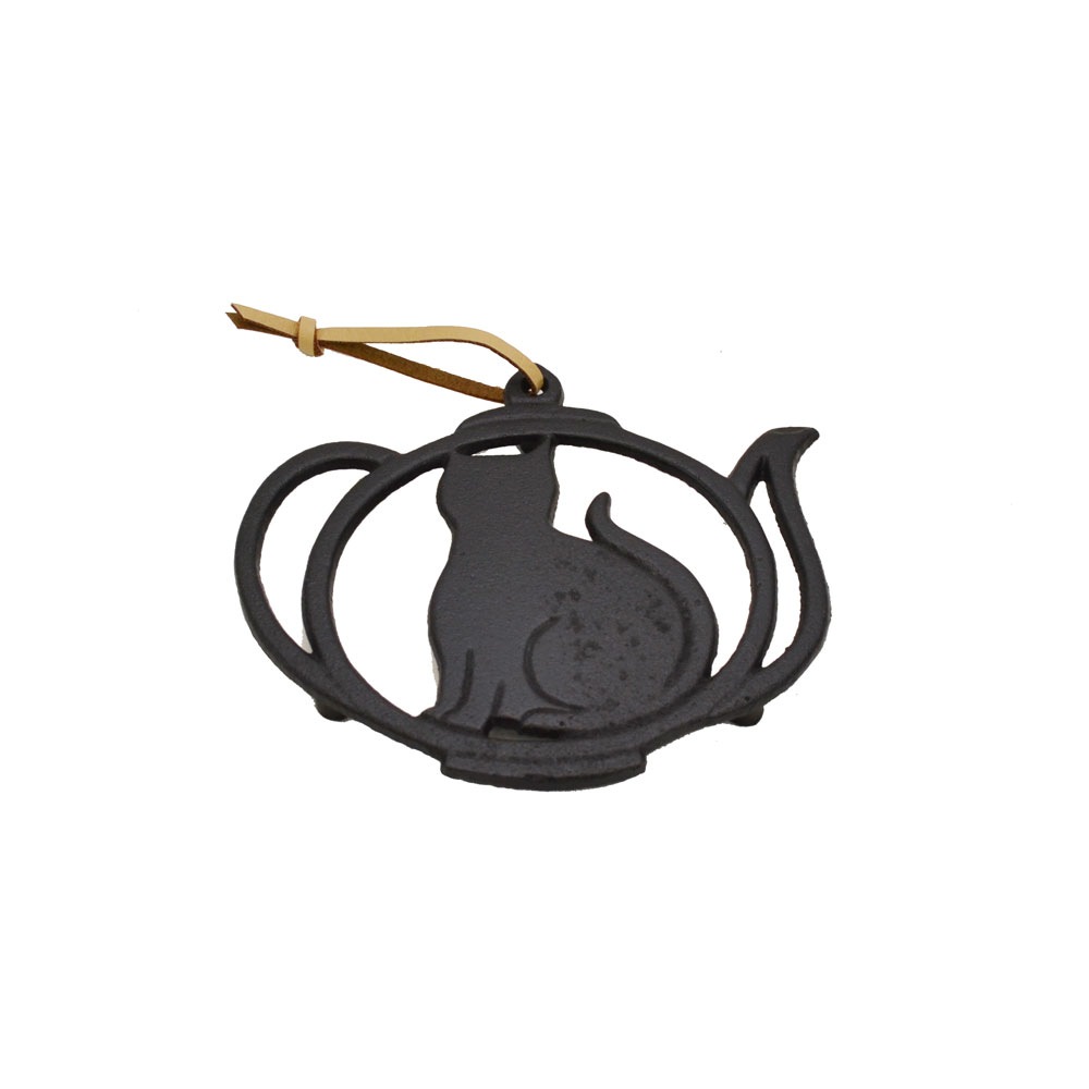 鉄猫鍋敷き 壷型 黒 壁掛け 紐付き ねこ形 アイアン ネコ