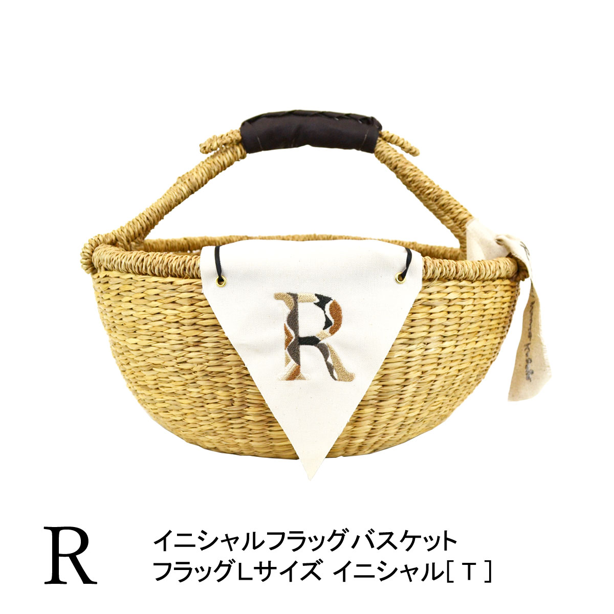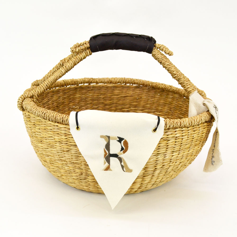 イニシャルフラッグバスケット R シーグラス 浅型 一本手