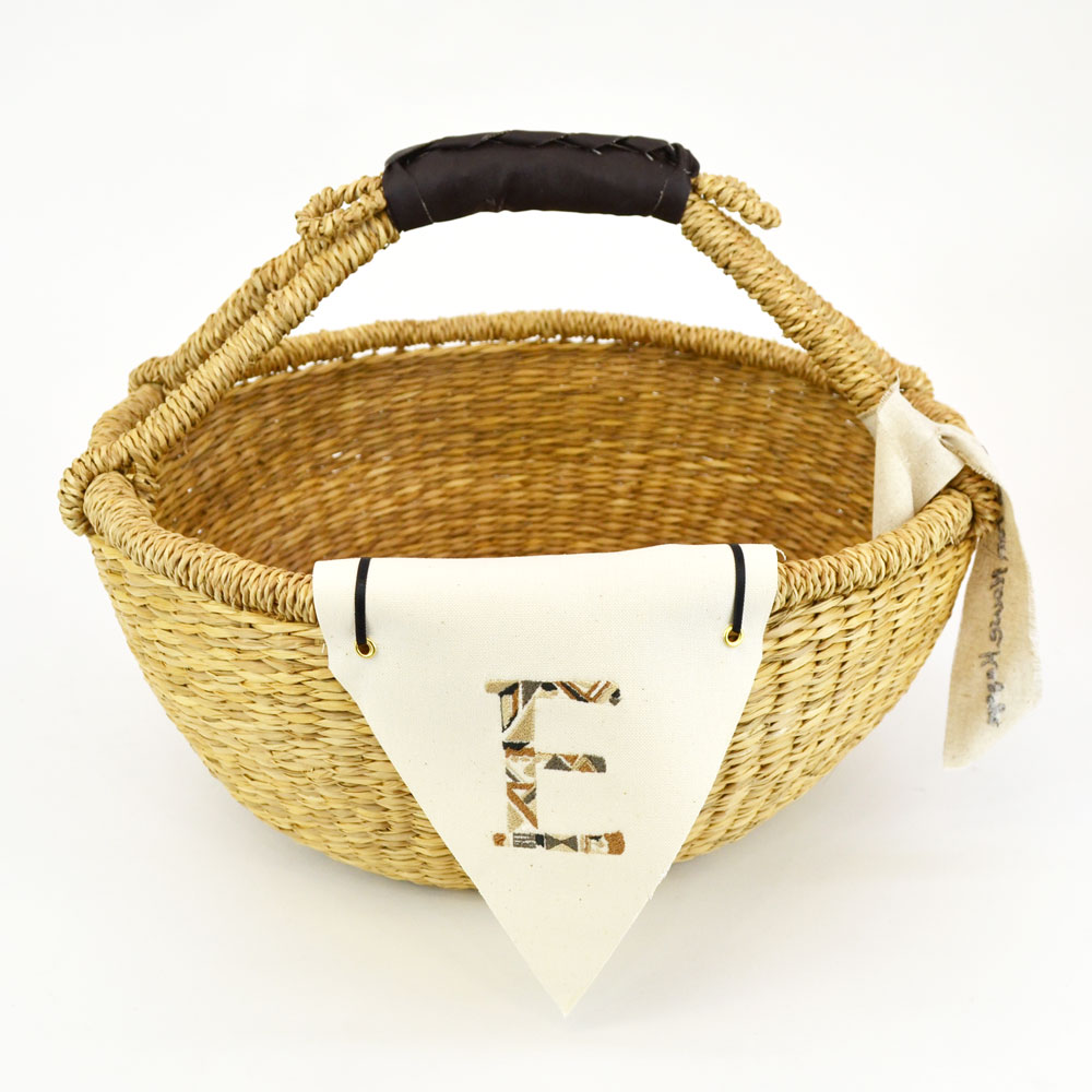イニシャルフラッグバスケット E シーグラス 浅型 一本手