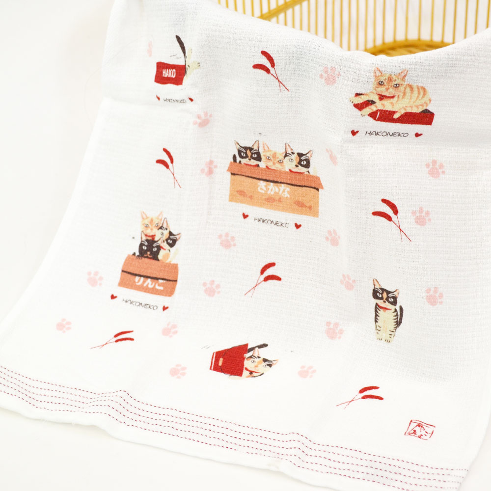 手ぬぐいタオル 箱ねこ かわいい 今治製 綿 猫 ネコ