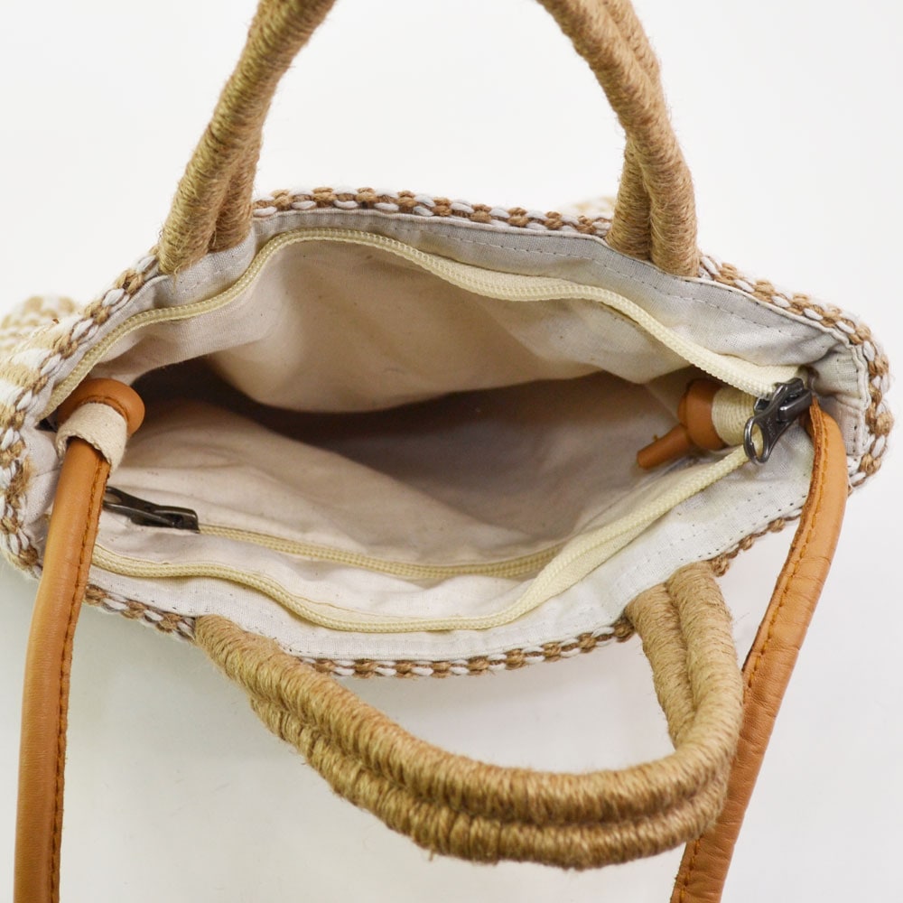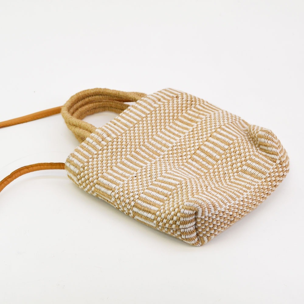 手機、機織機で丁寧に織りあげられたジュートバッグ。