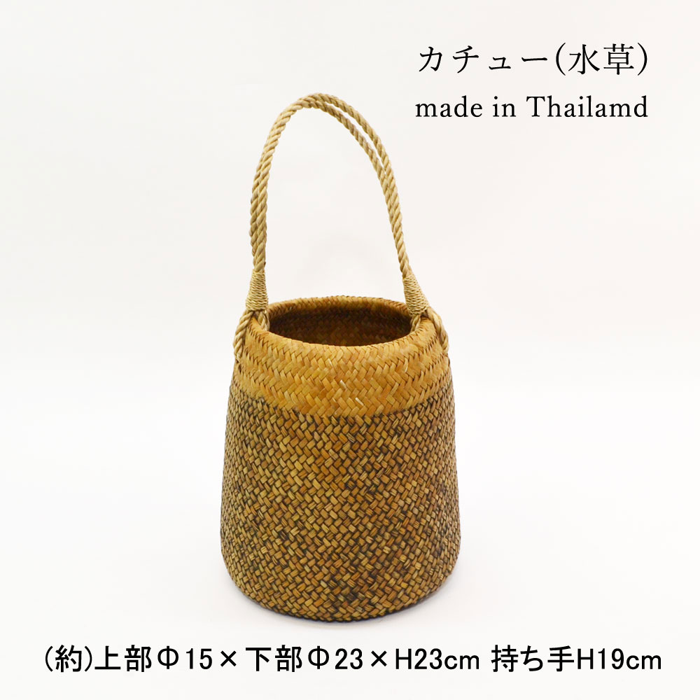 タイ製 カチュー ラウンド かごバッグ シャビー加工 水草