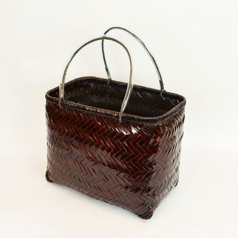 竹製 市場かご たて型L ダークブラウン 竹かごバッグ カゴ