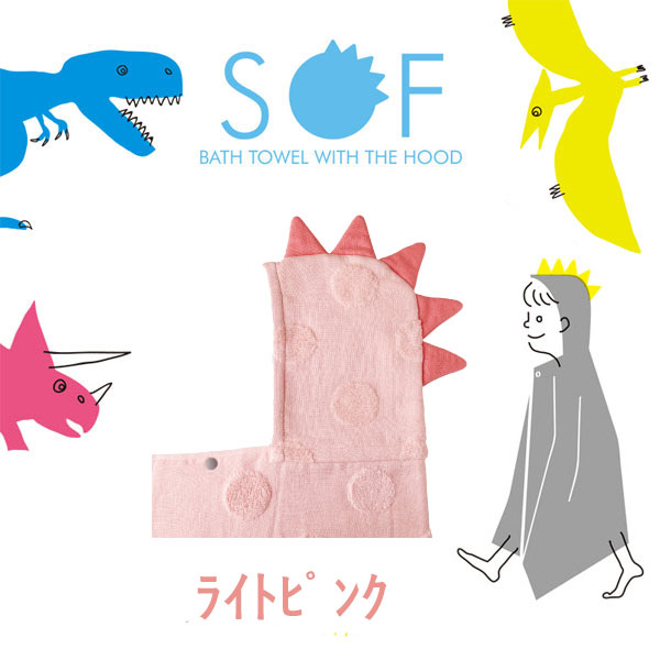 SOF ソフ フード付きタオル ライトピンク 恐竜 今治産