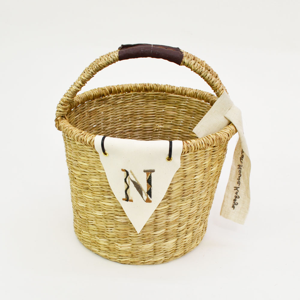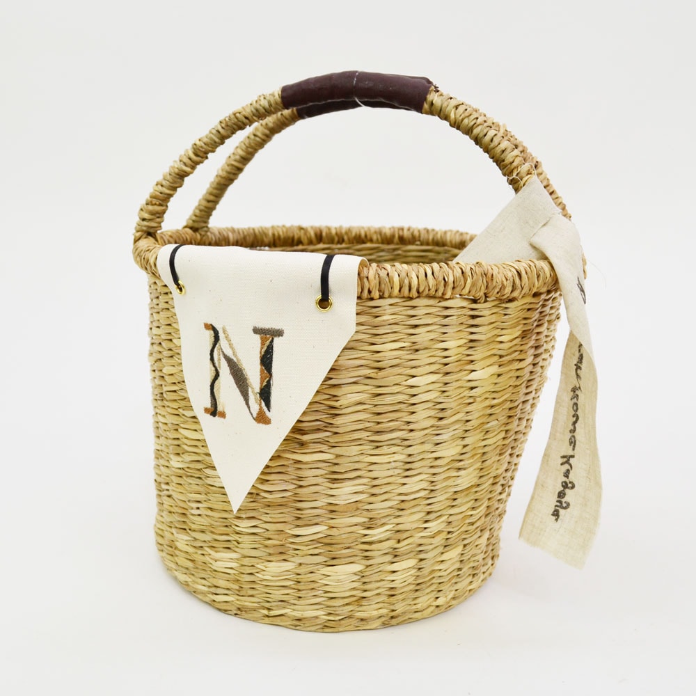 イニシャルフラッグバスケット N シーグラス 丸型 2本手