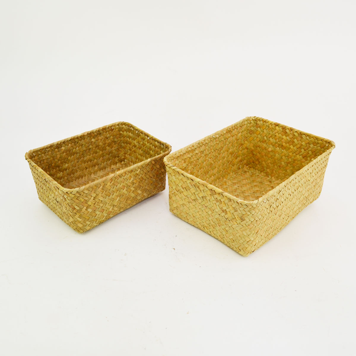 シーグラスの四角かご S・Lセット 天然素材 小物入れ