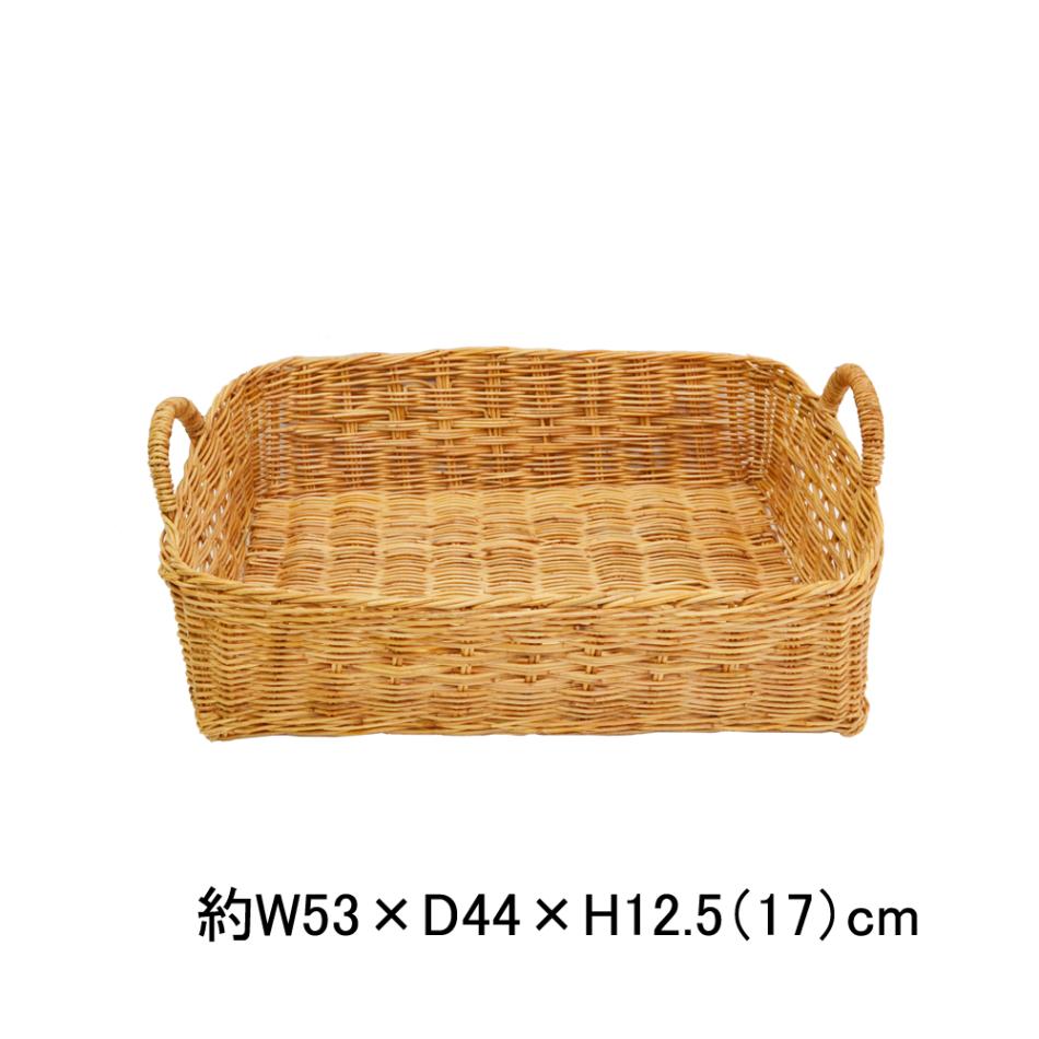 ラタン取手 浅型バスケット L 四角 タイ製 ディスプレイ