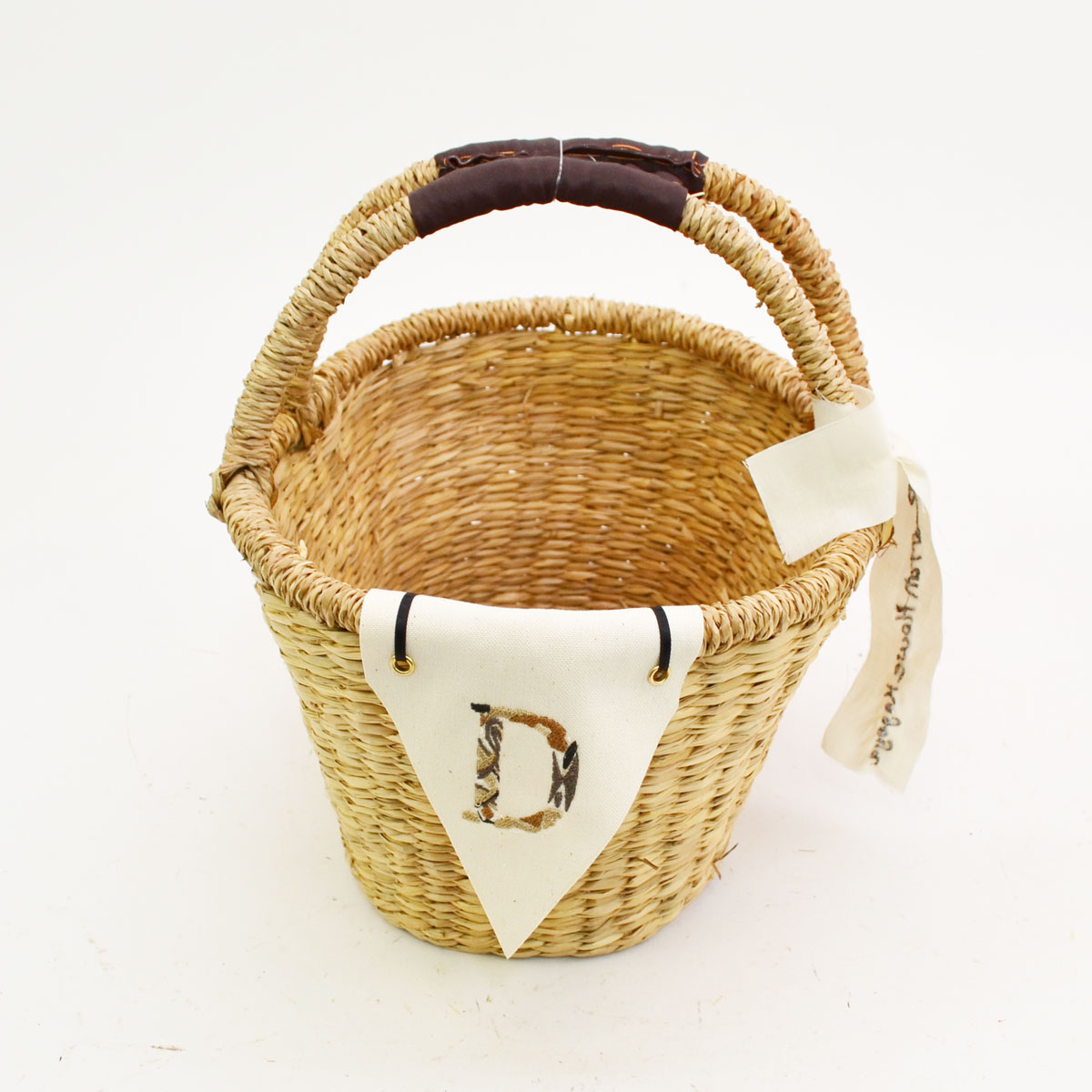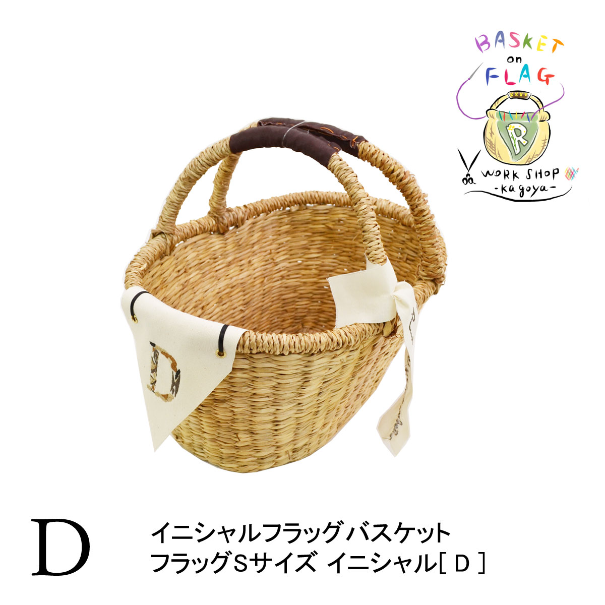 イニシャルフラッグバスケット D シーグラス 楕円型 2本手