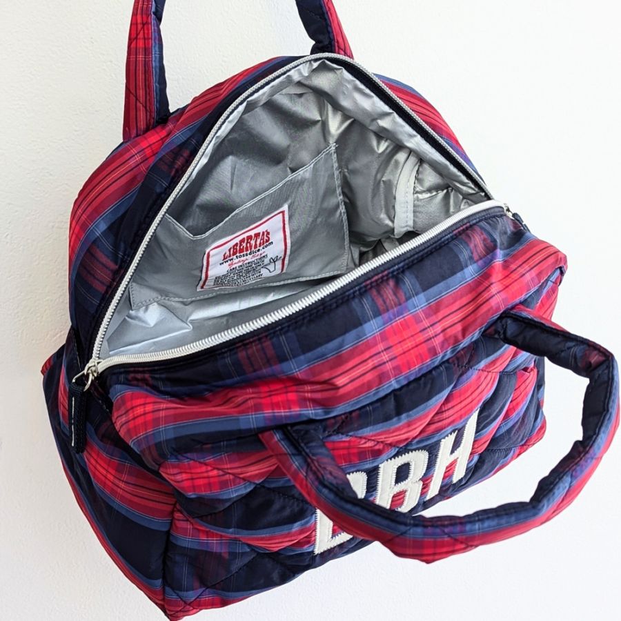 BBH キルティングミニボストンバッグ チェックネイビー