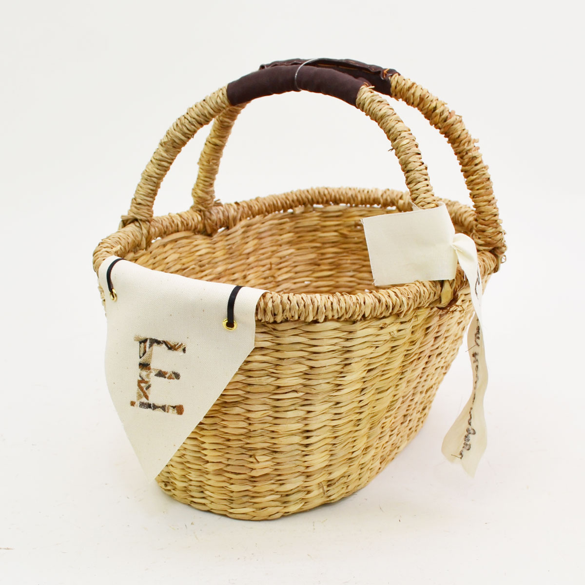 イニシャルフラッグバスケット E シーグラス 楕円型 2本手