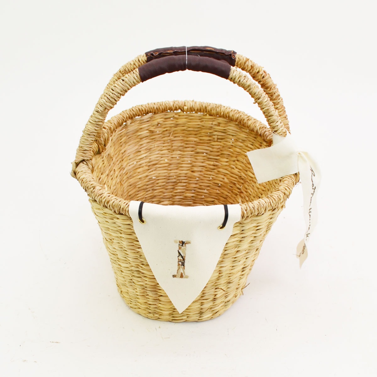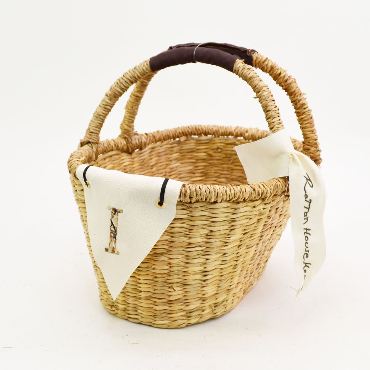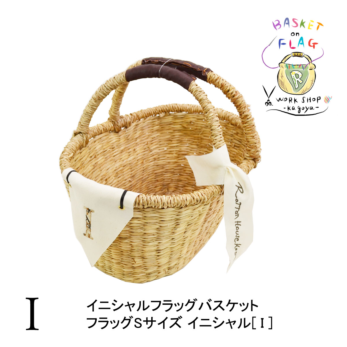 イニシャルフラッグバスケット I シーグラス 楕円型 2本手