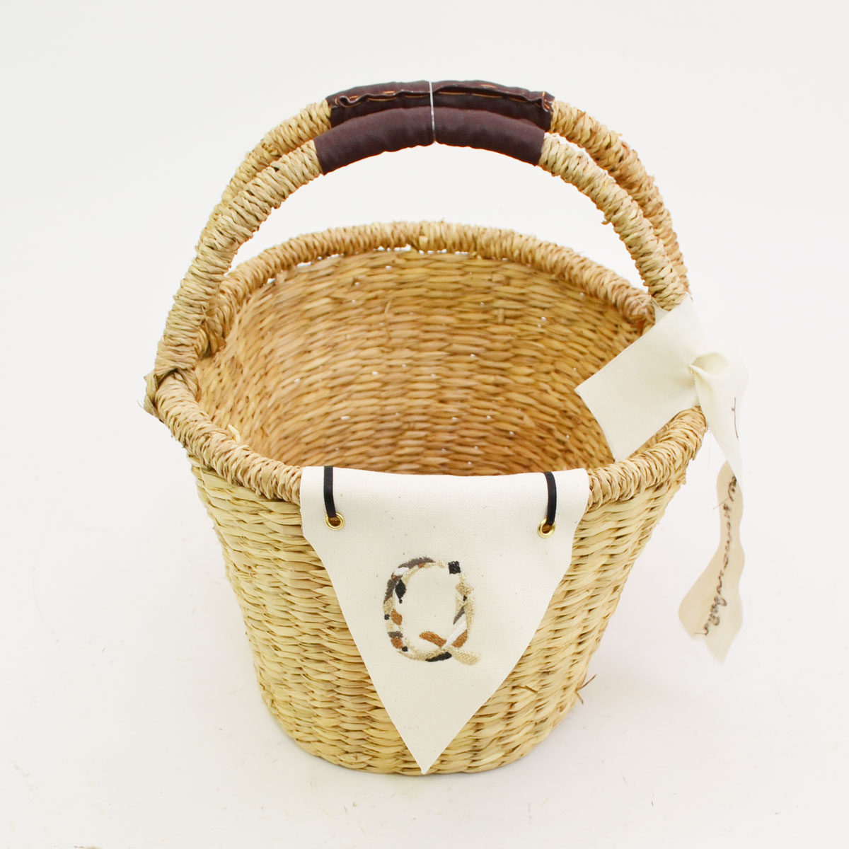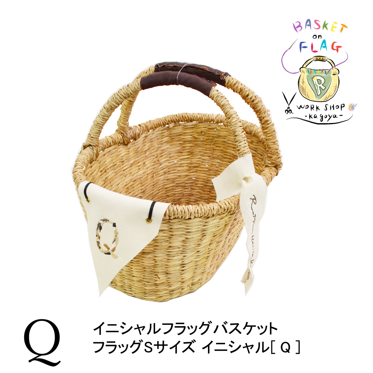 イニシャルフラッグバスケット Q シーグラス 楕円型 2本手