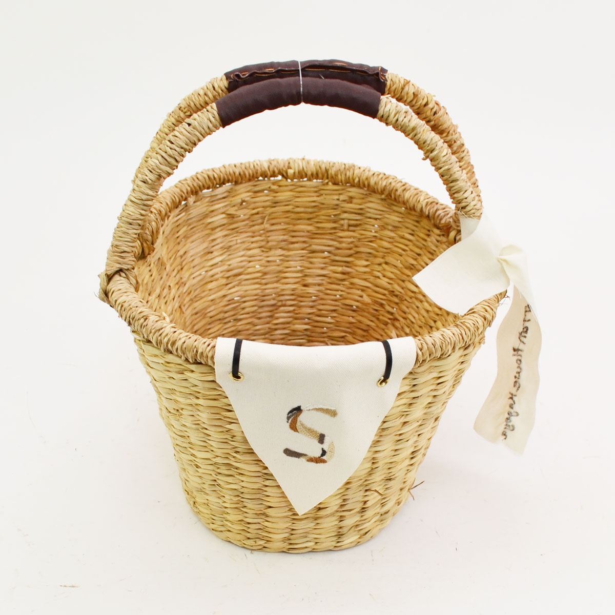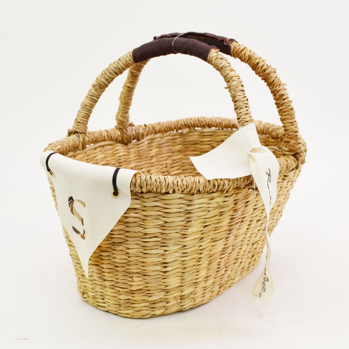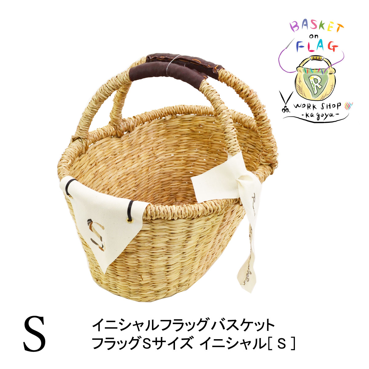 イニシャルフラッグバスケット S シーグラス 楕円型 2本手