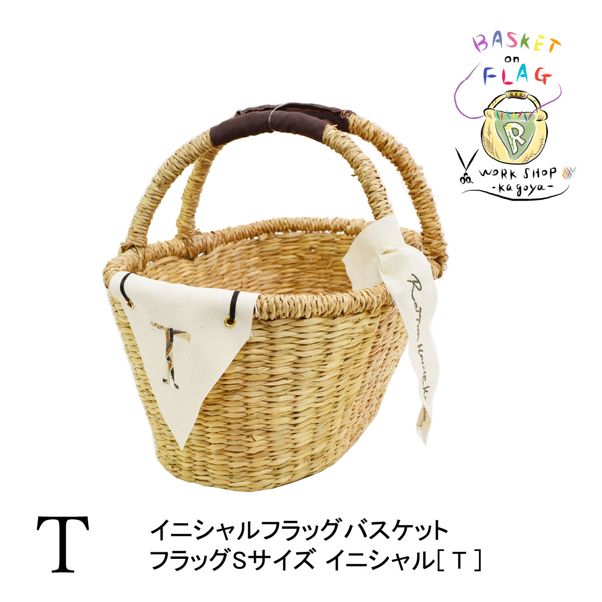 イニシャルフラッグバスケット T シーグラス 楕円型 2本手