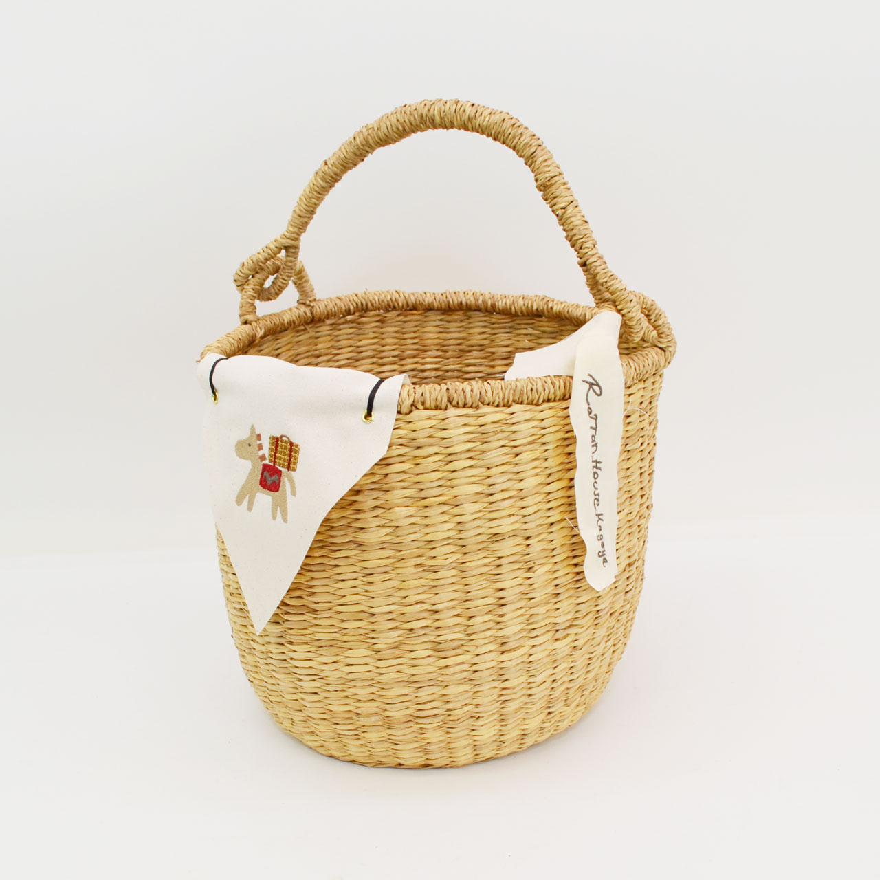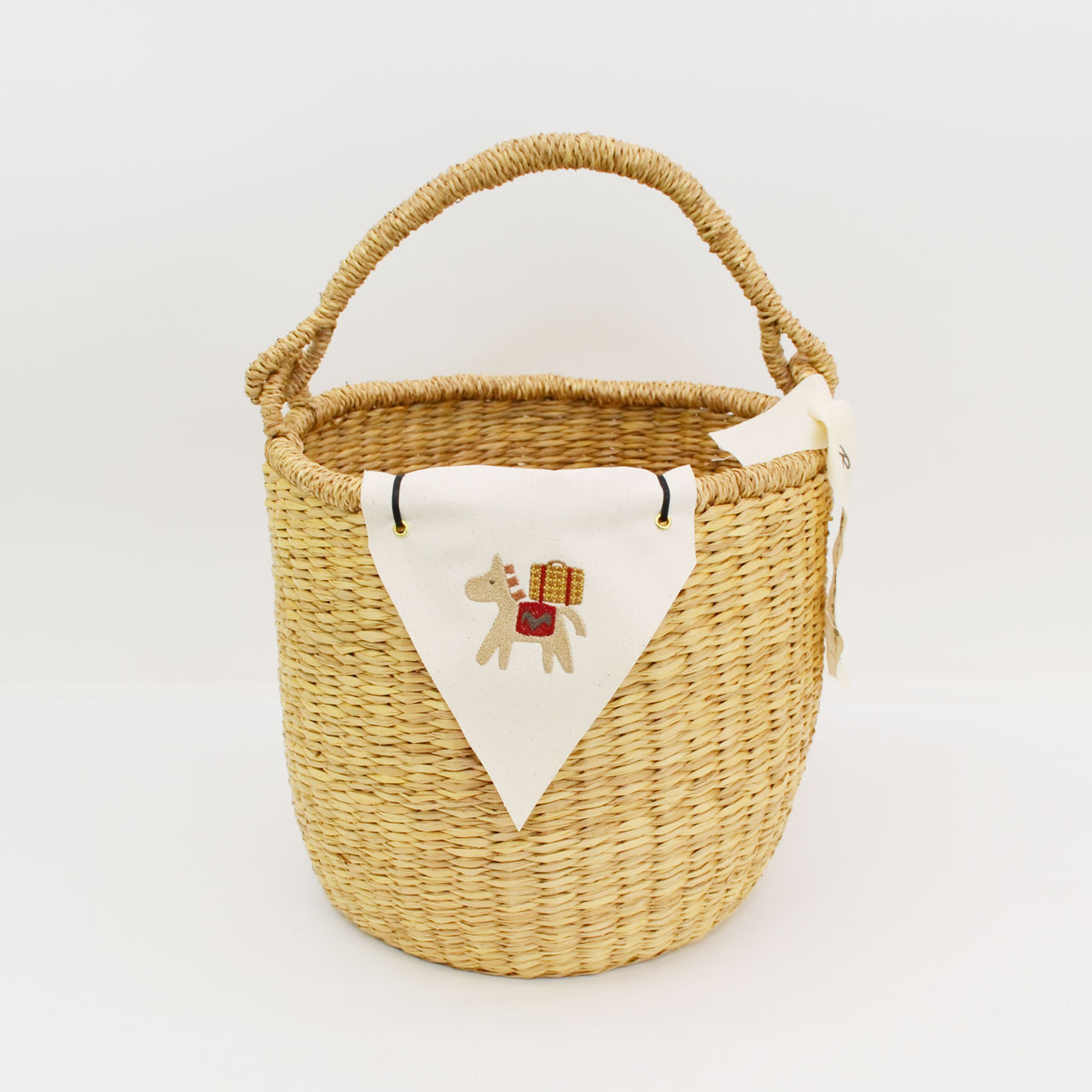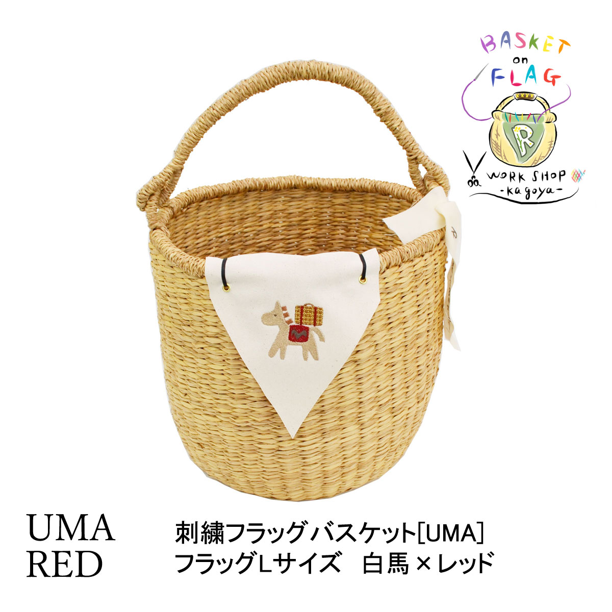 刺繍フラッグバスケット L ホワイトホース×赤 かごバッグ