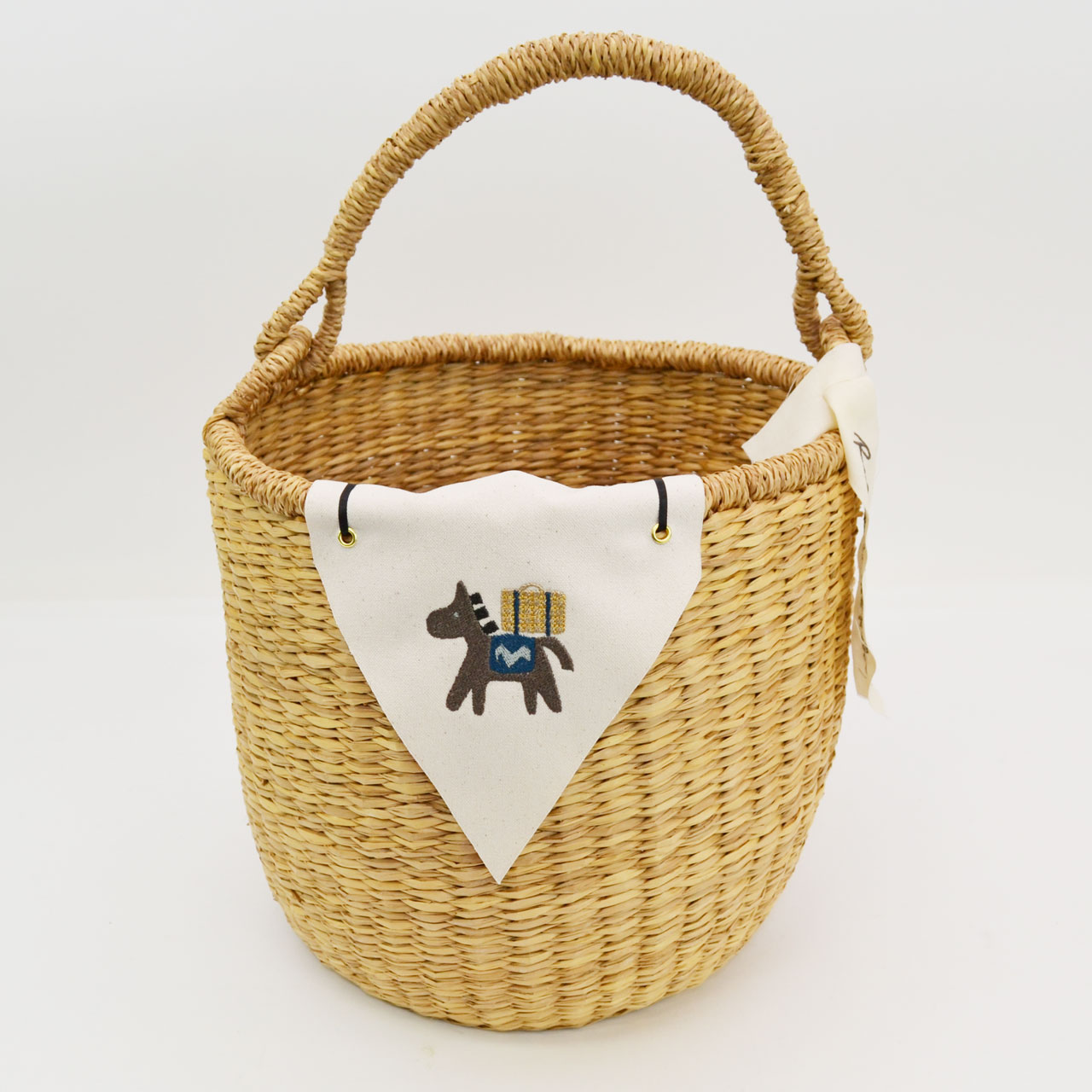 刺繍の絵柄はお馬さんがトランクバスケットを背負ったかわいらしいデザイン。