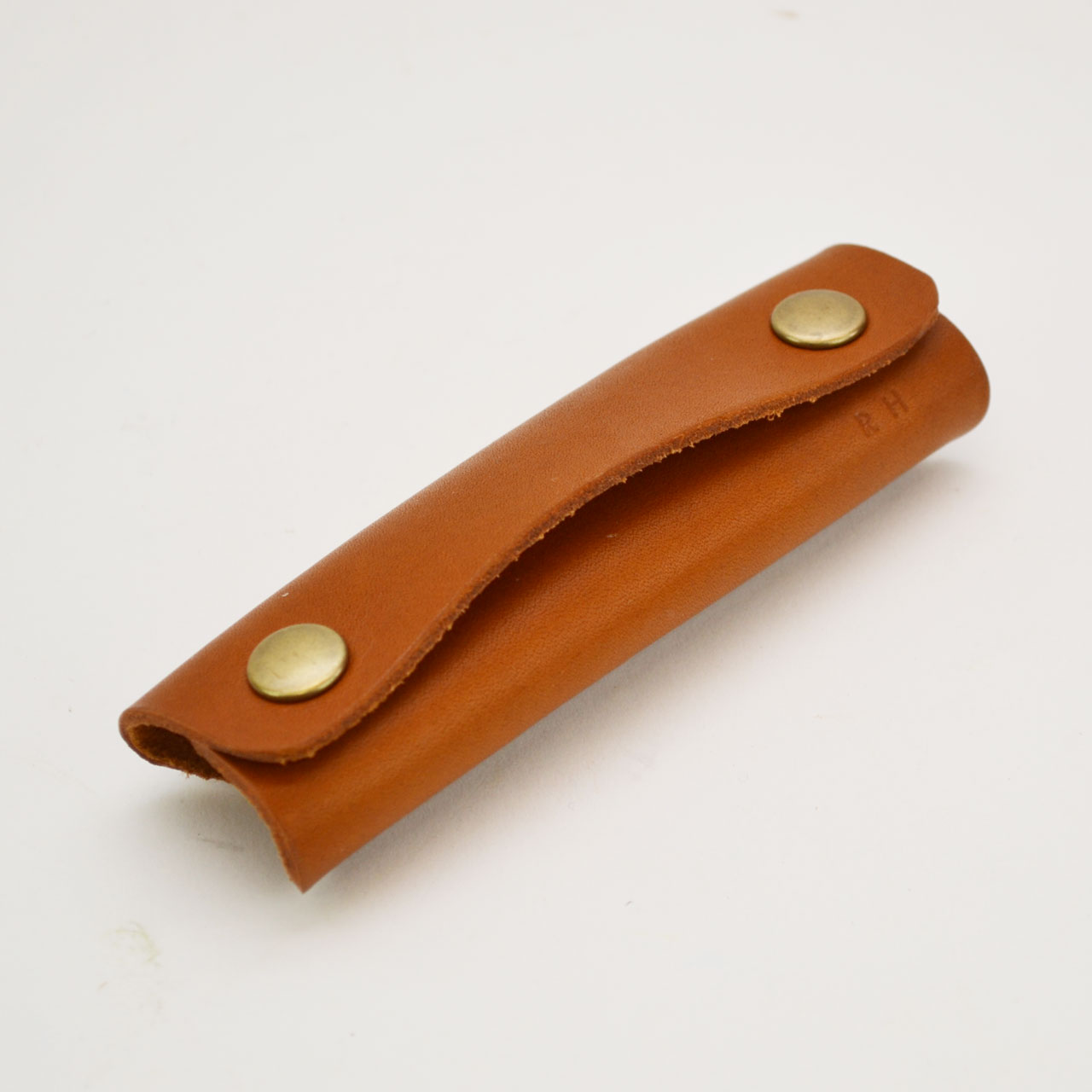 日本製、姫路レザー使用、オイル仕上げの本革ハンドル。