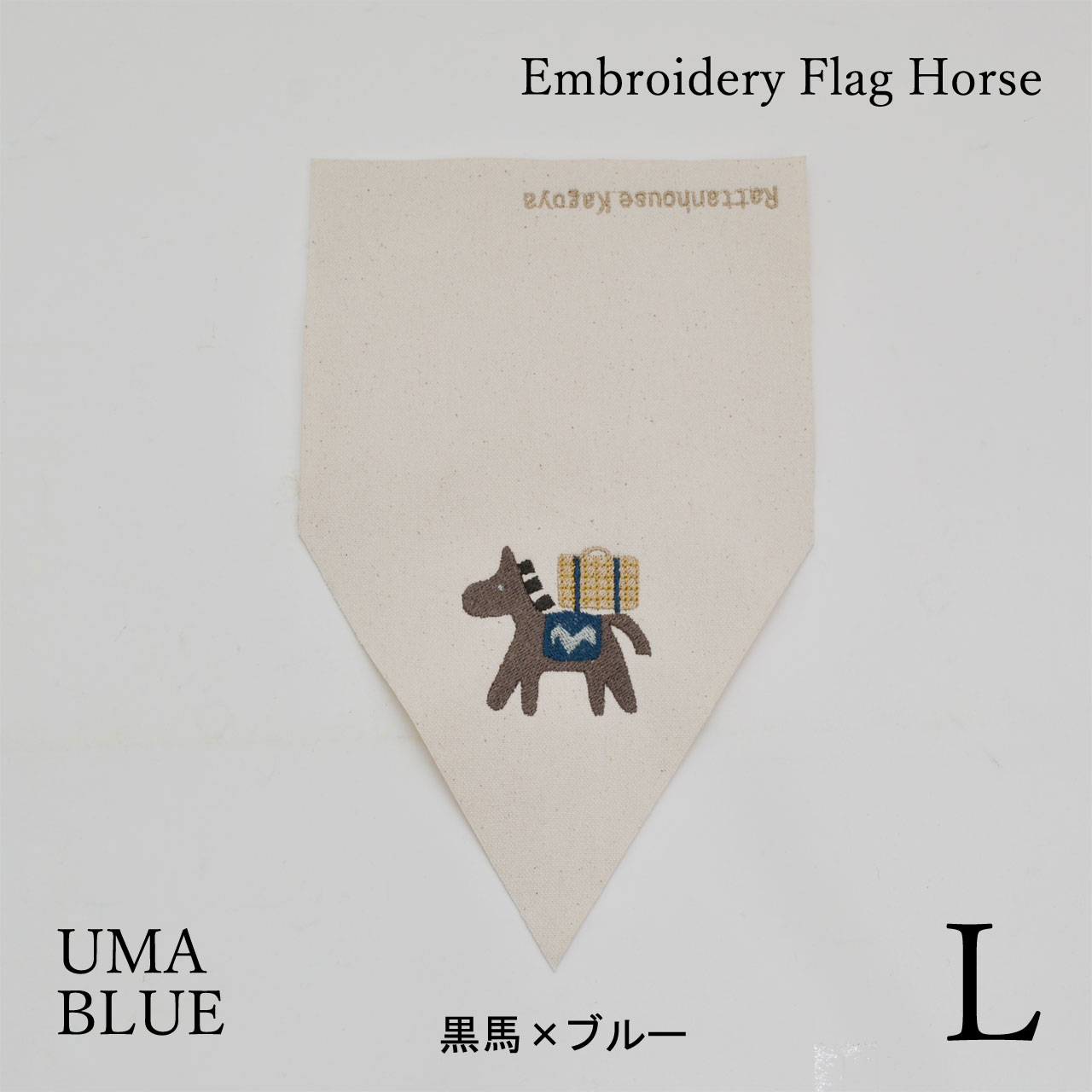 ラタンハウスオリジナルデザイン、自社製造の刺繍フラッグ、旗。