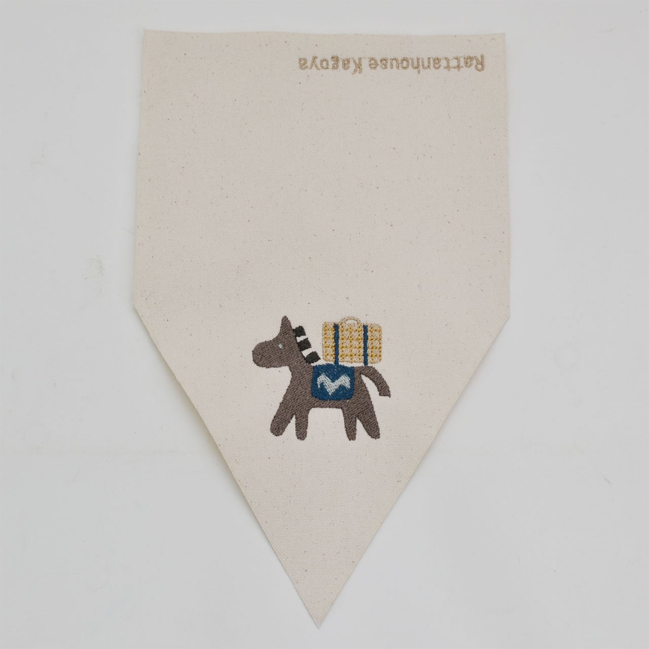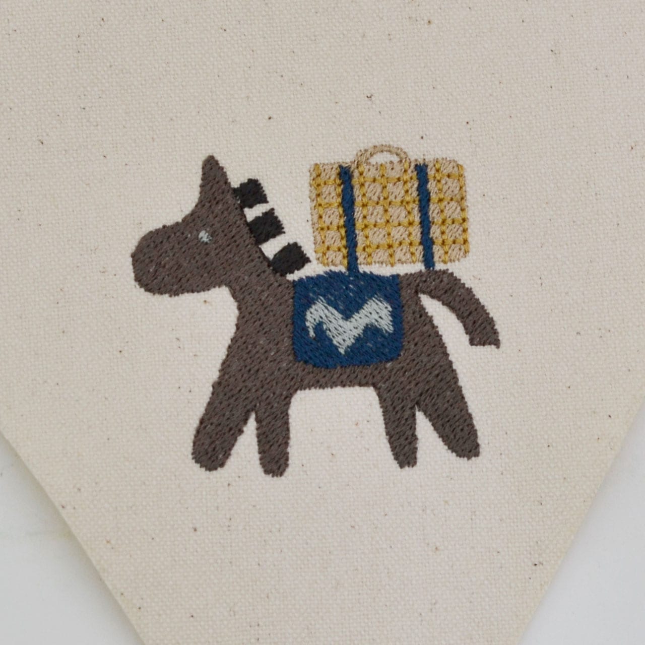 刺繍の絵柄はお馬さんがトランクバスケットを背負ったかわいらしいデザイン。