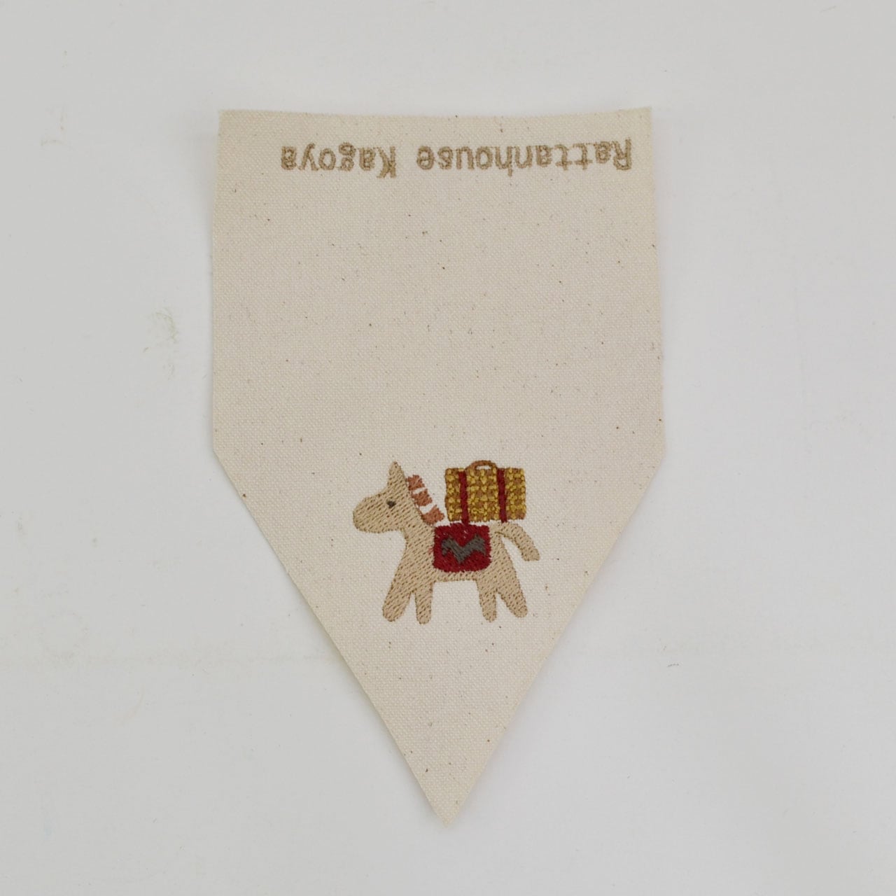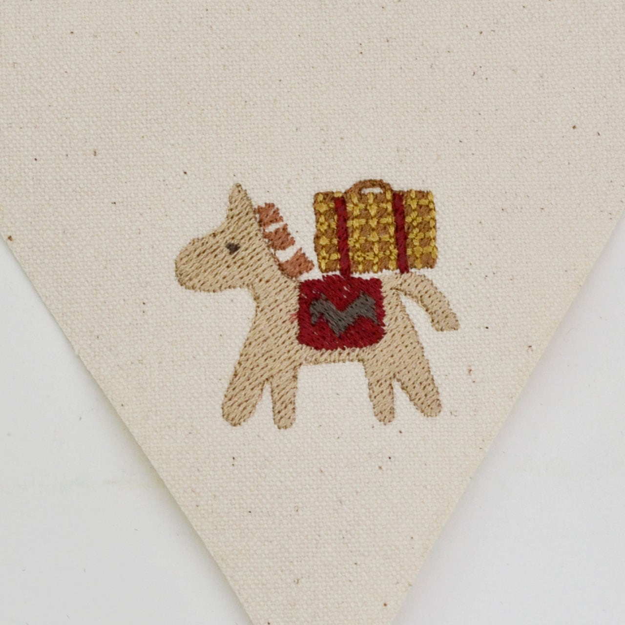 刺繍の絵柄はお馬さんがトランクバスケットを背負ったかわいらしいデザイン。