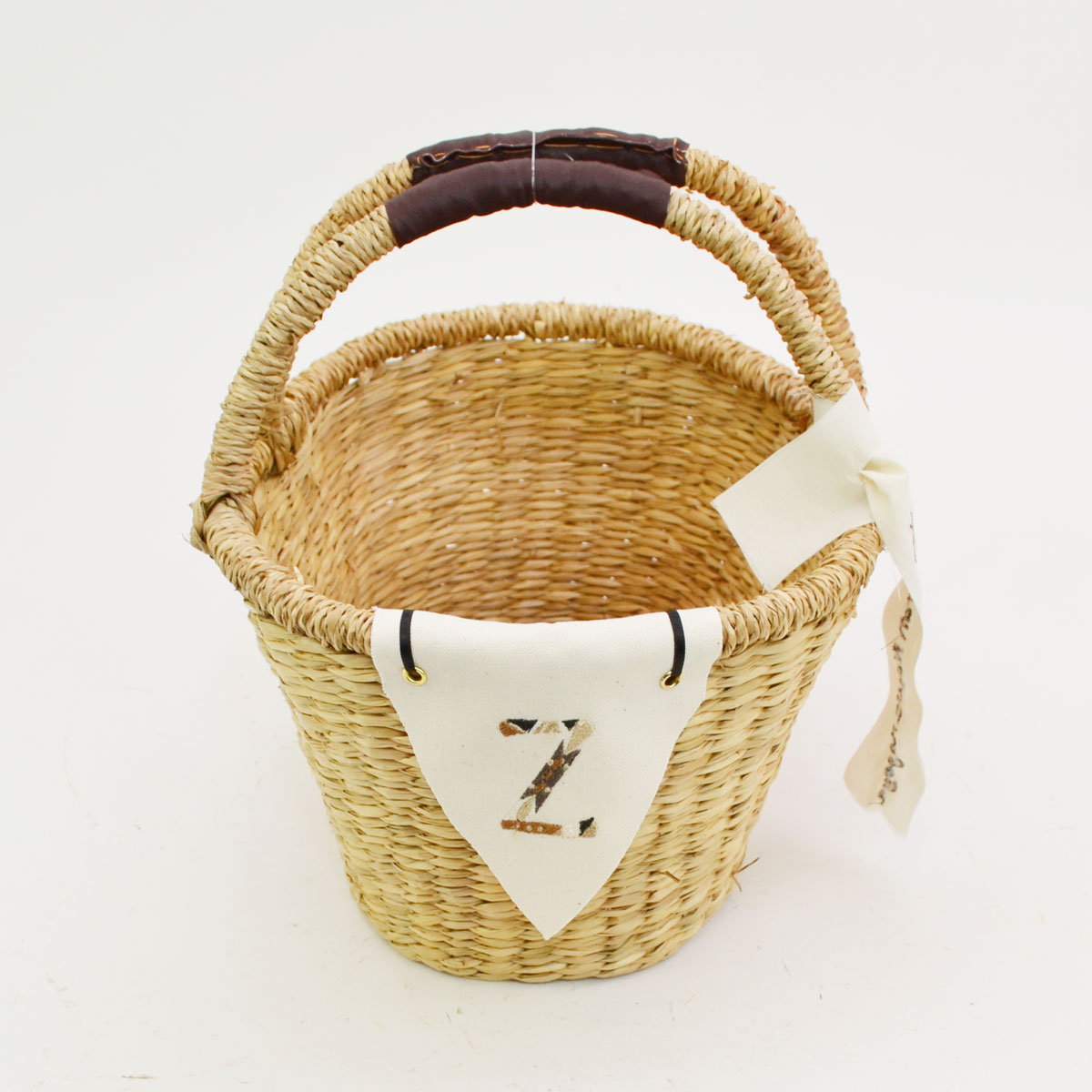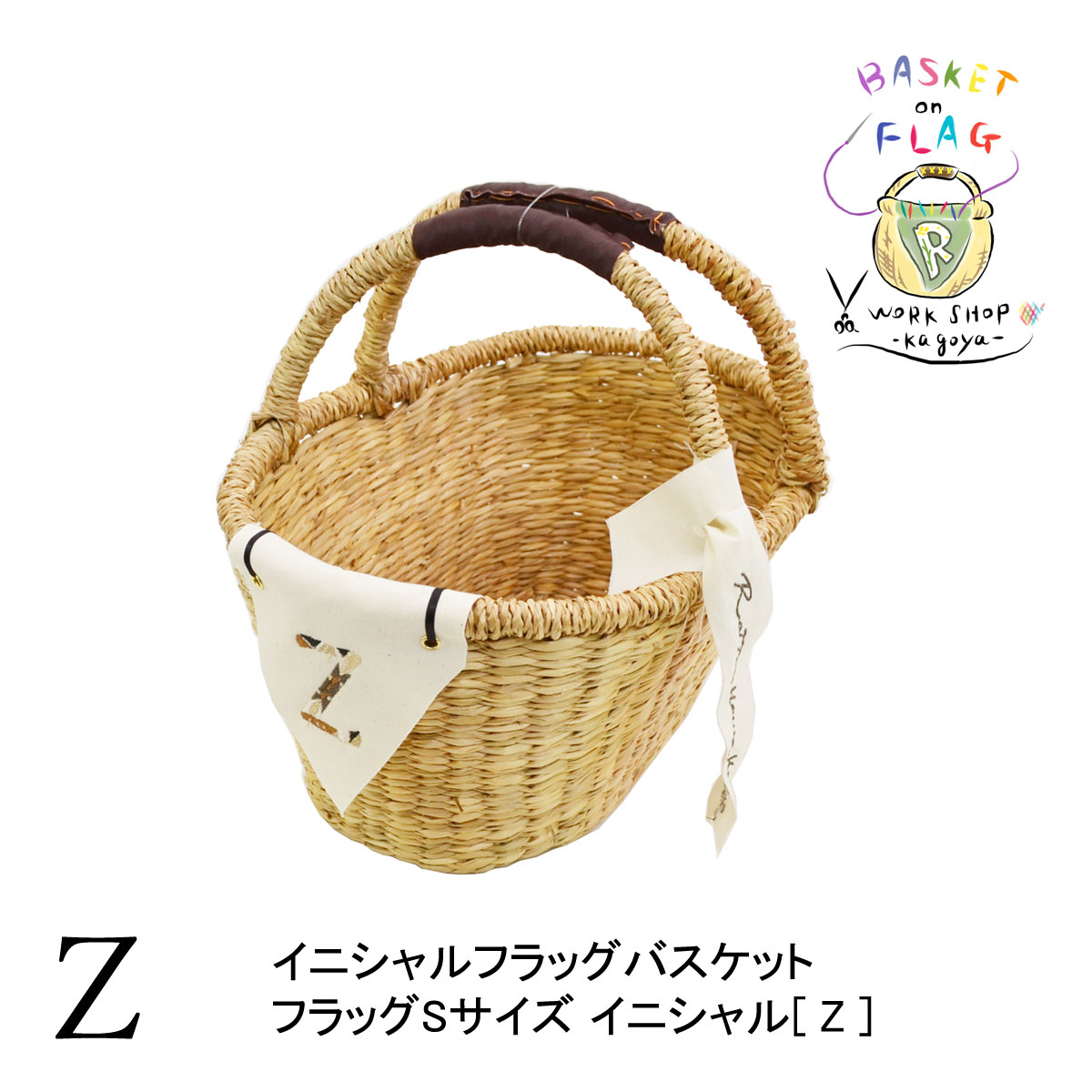 イニシャルフラッグバスケット Z シーグラス 楕円型 2本手