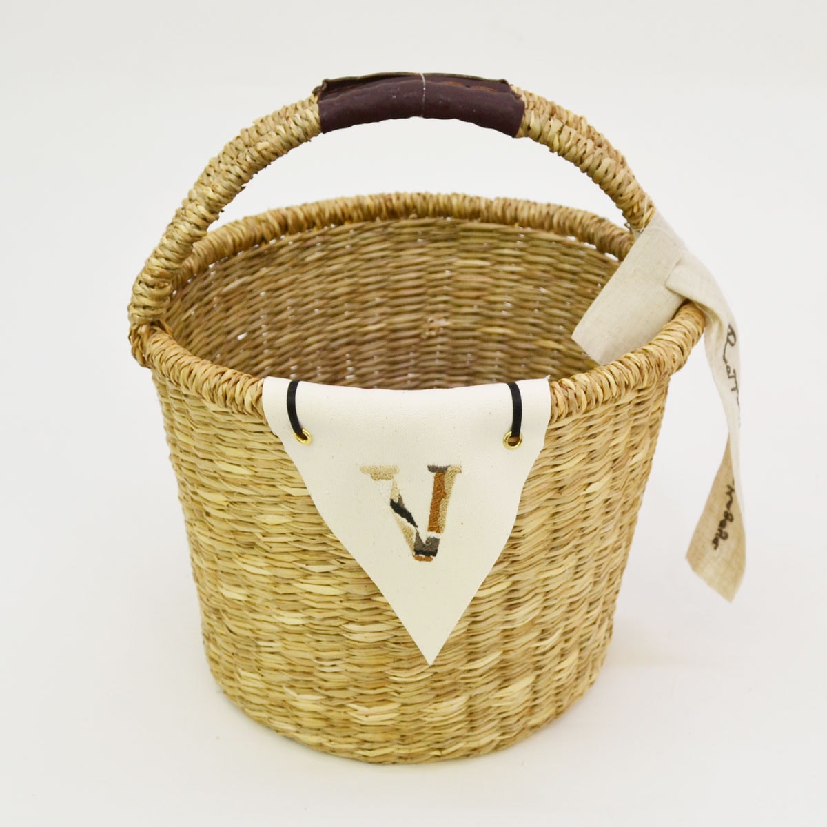 イニシャルフラッグバスケット V シーグラス 丸型 2本手