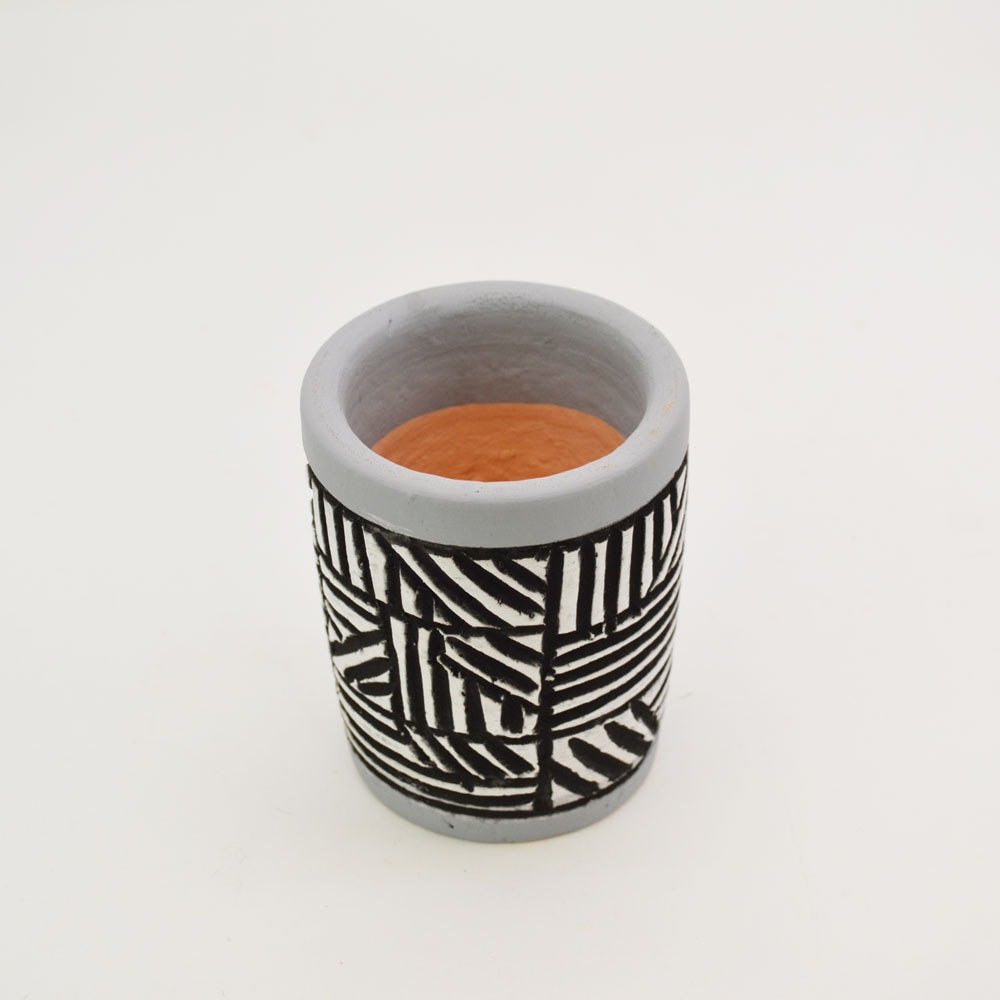 ・直径9.5cm ・口径 7.5cm ・高さ 12cm ・内高さ 10.5cm ・内底直径5.5cm ・底直径 8.5cm 土容量:0.35L 底穴 : 有